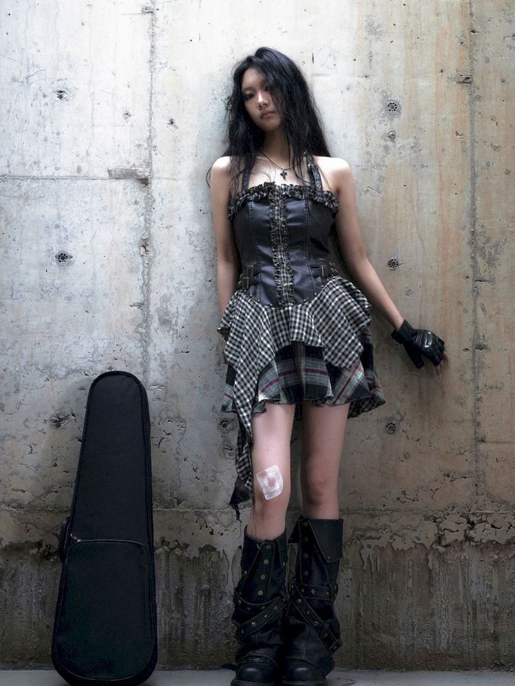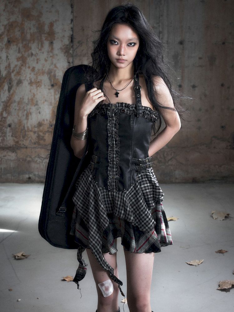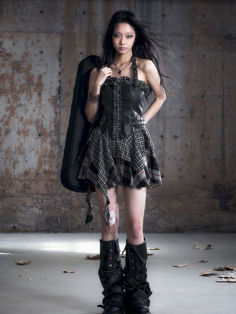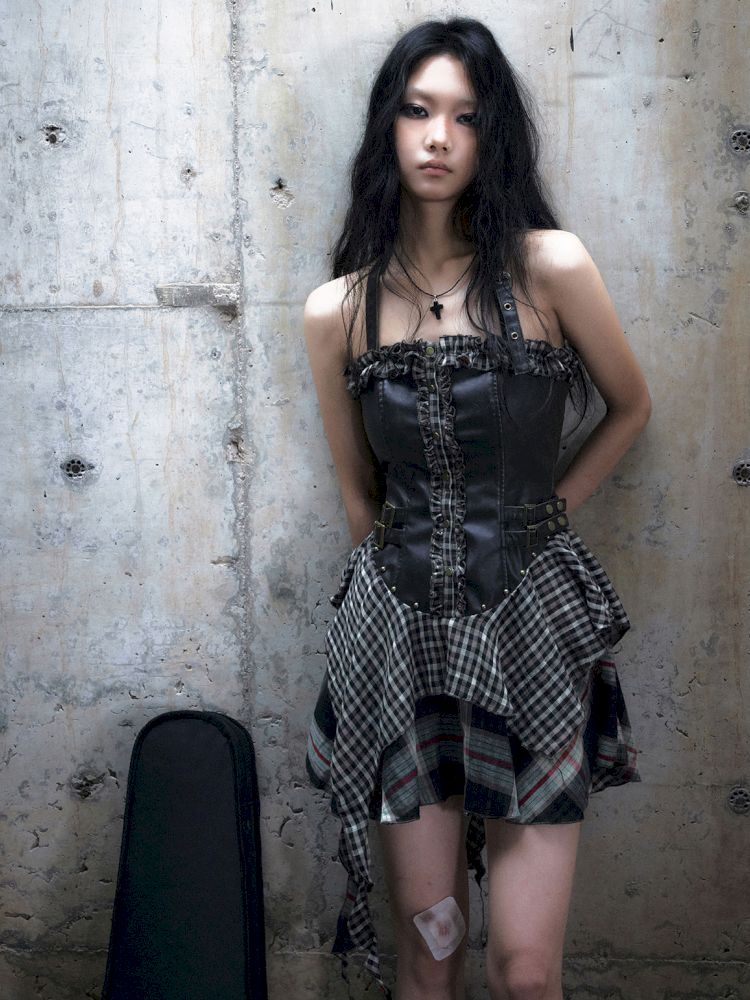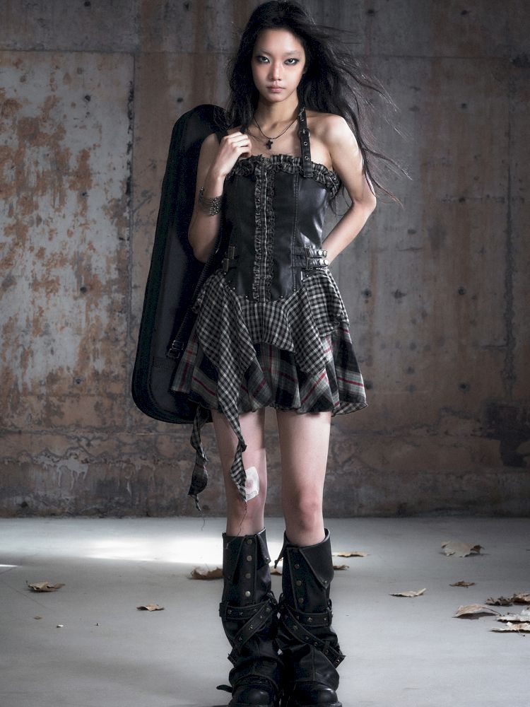 Patchwork Lattice Waisted Dress【s0000013889】