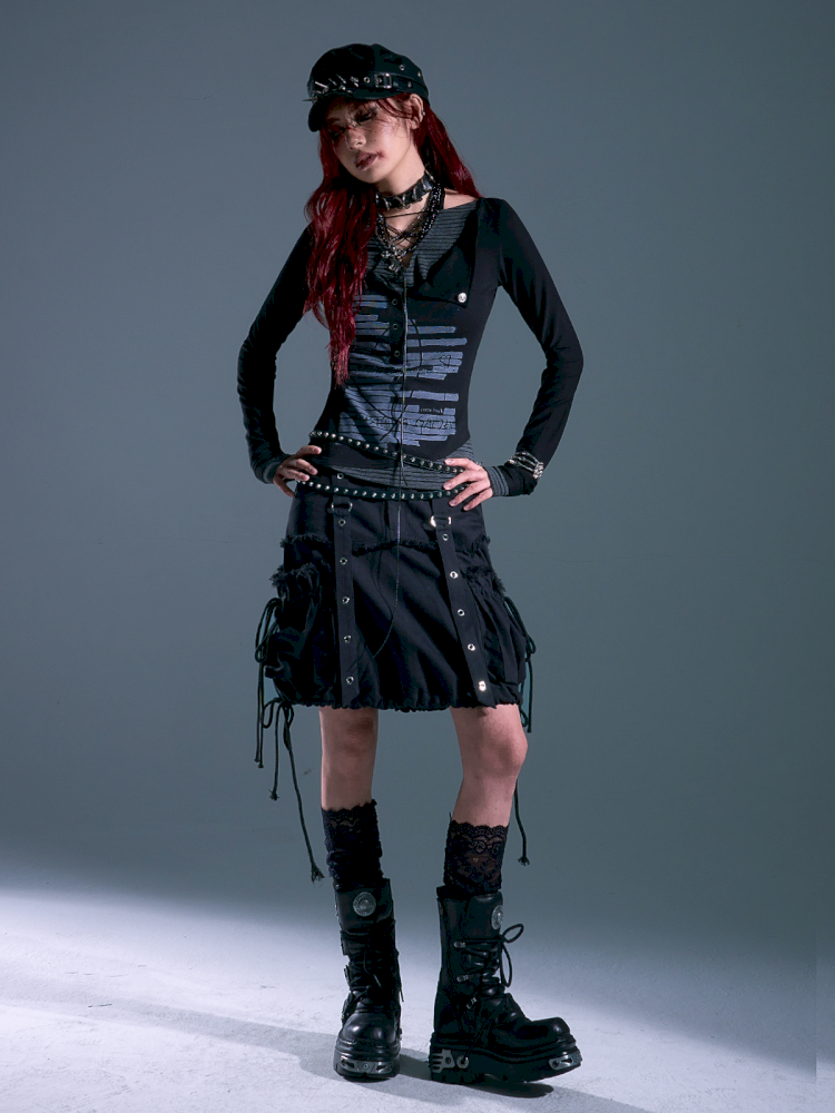 3D Pocket Frayed Hem Puffy Skirt【s0000013918】