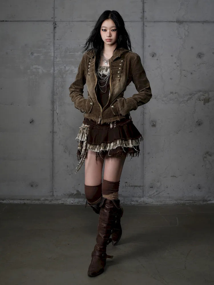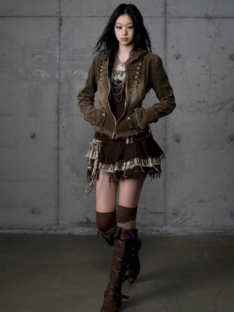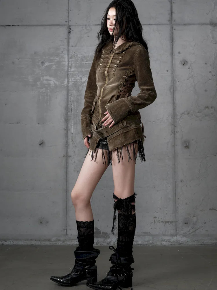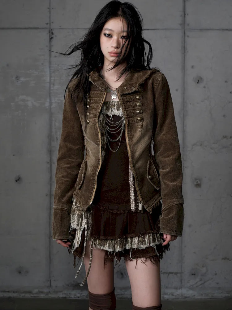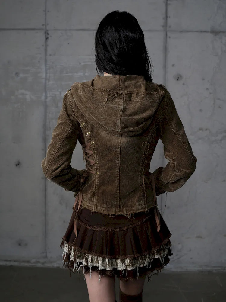 Corduroy Detachable Slim-Fit Hooded Jacket【s0000013952】