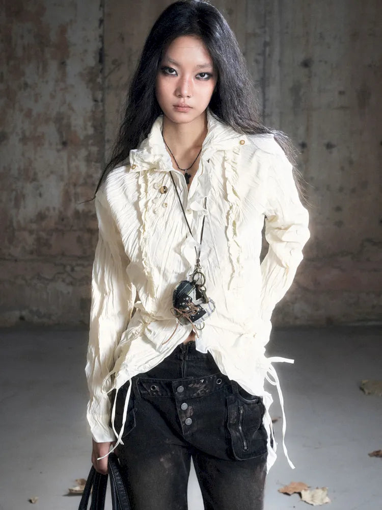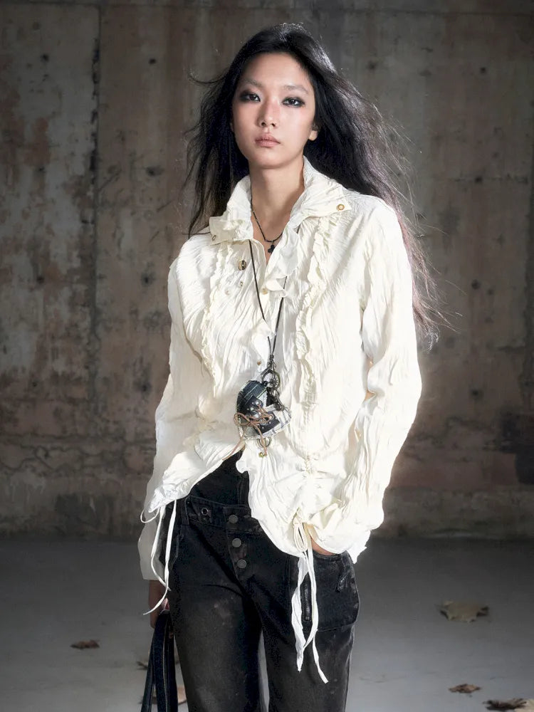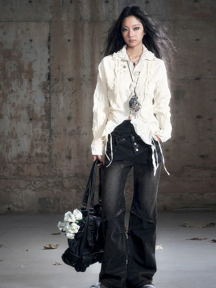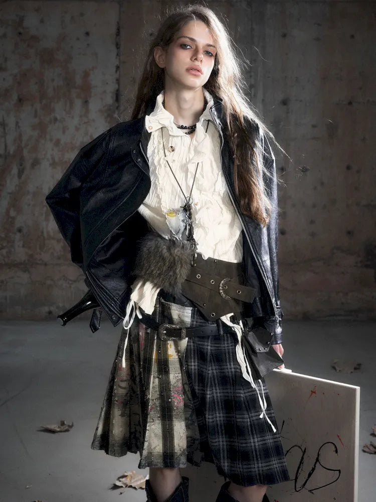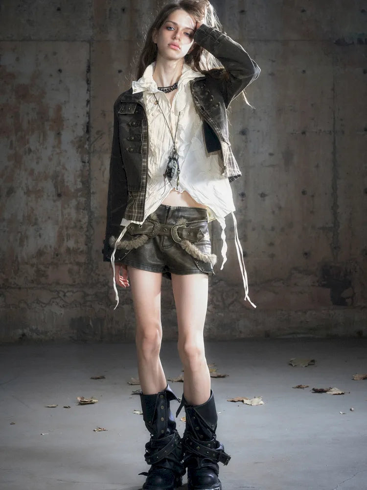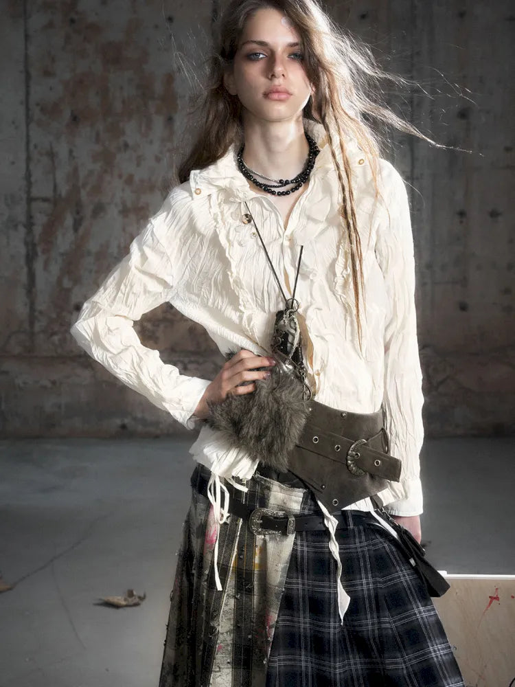 Drawstring Black-Gray Checkered Shir【s0000013959】