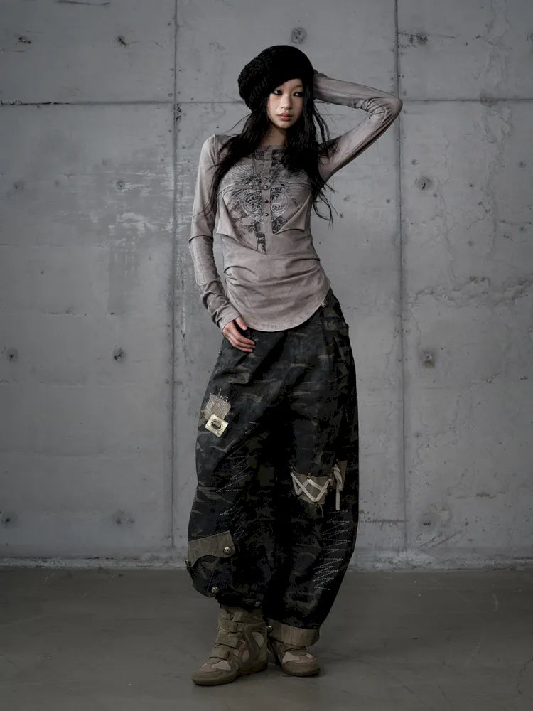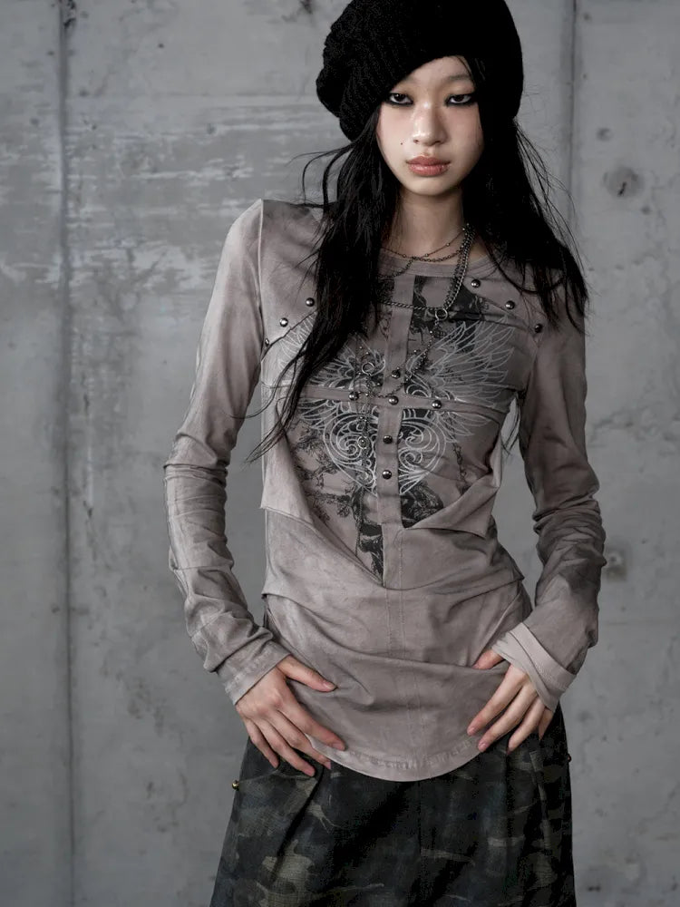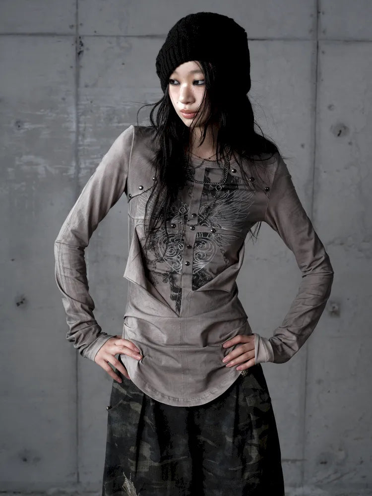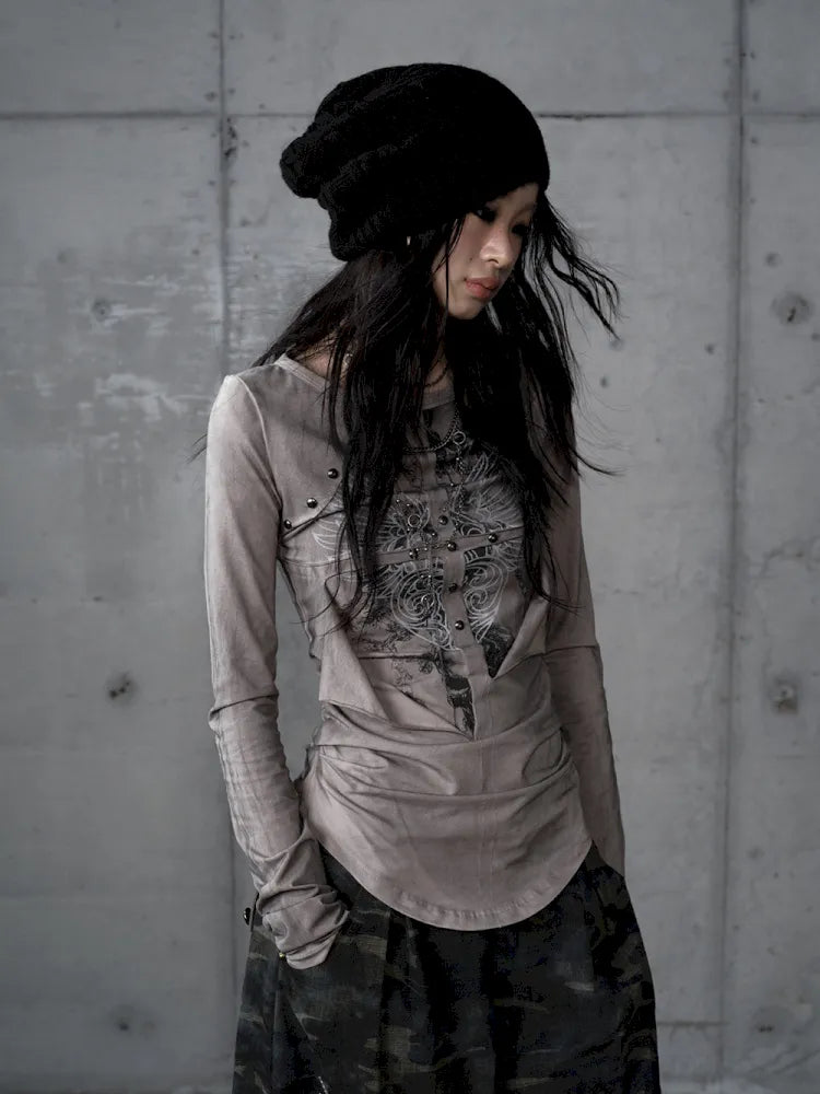 Deconstructed Print Long-Sleeve Knit Base【s0000014117】