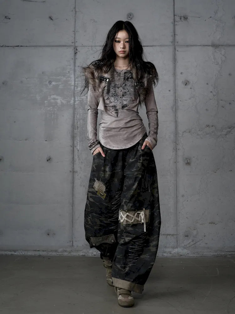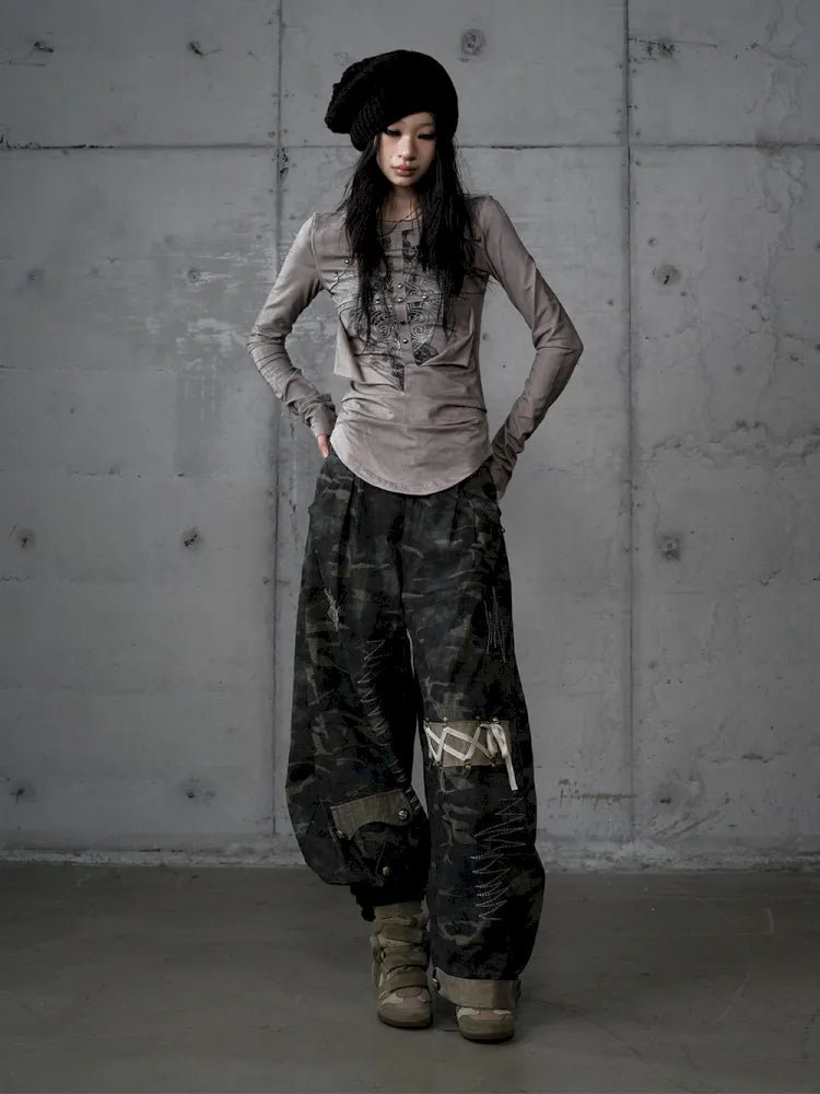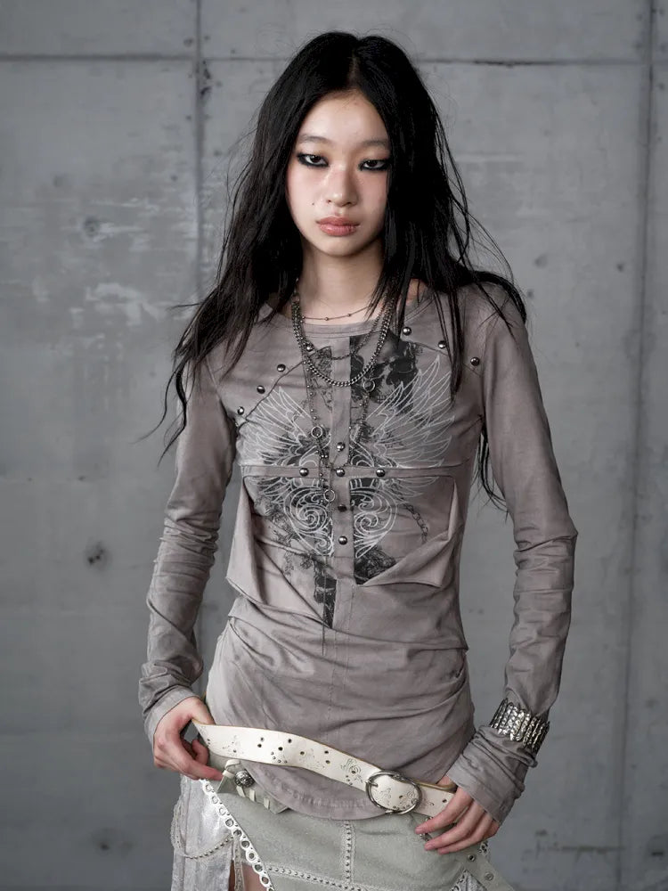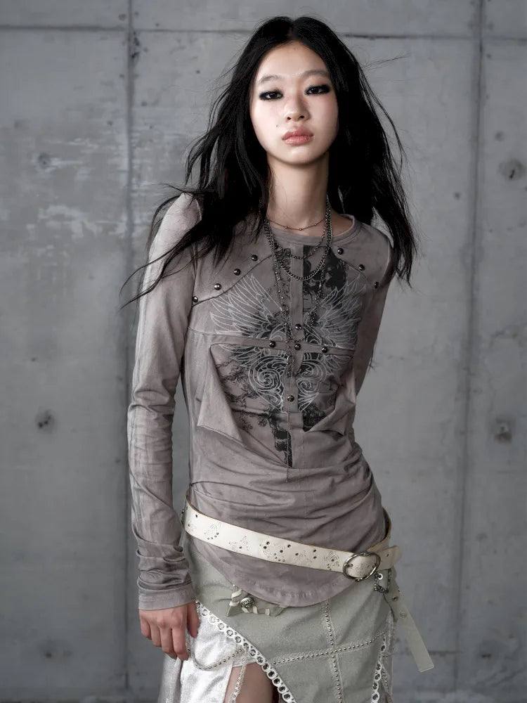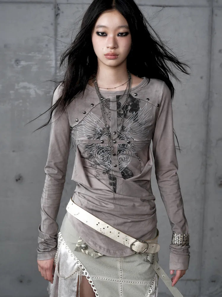 Deconstructed Print Long-Sleeve Knit Base【s0000014117】