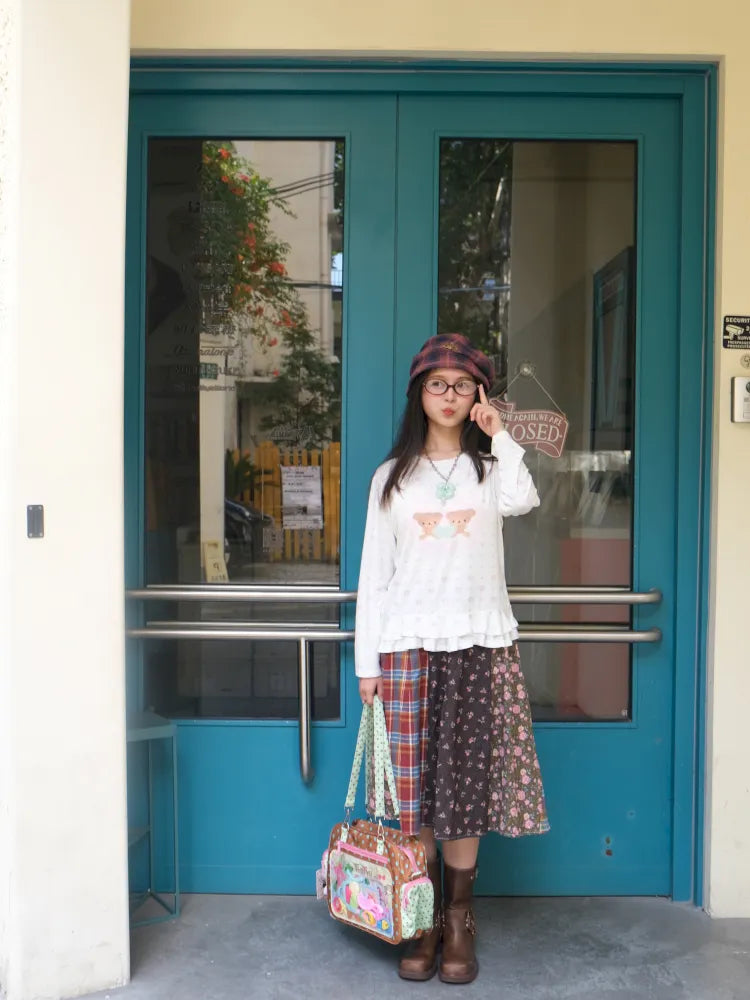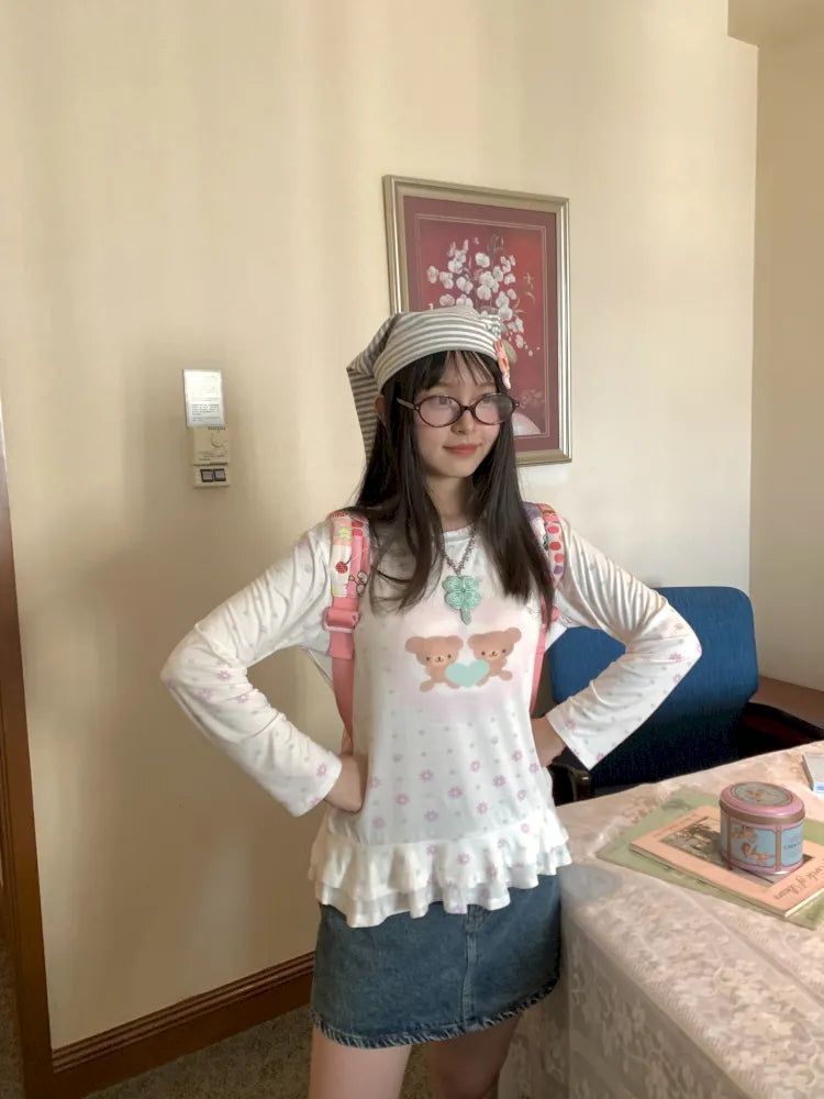 Bear Heart Lace Long-Sleeve T-Shirt【s0000014170】