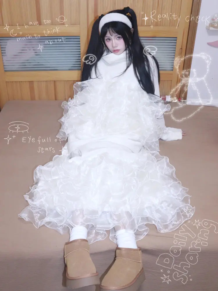 Apricot-Colored Design-Inspired Lace Skirt【s0000014344】