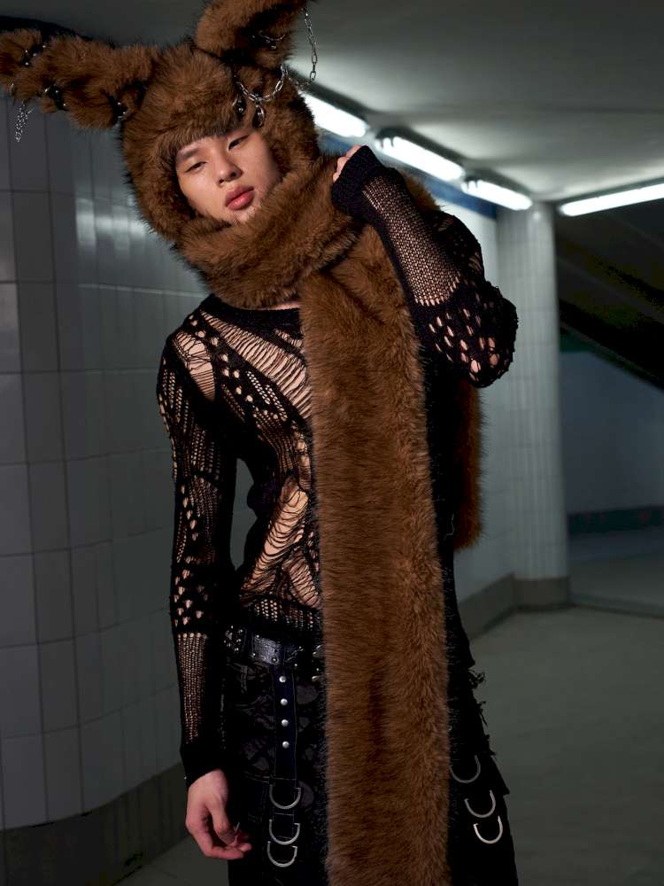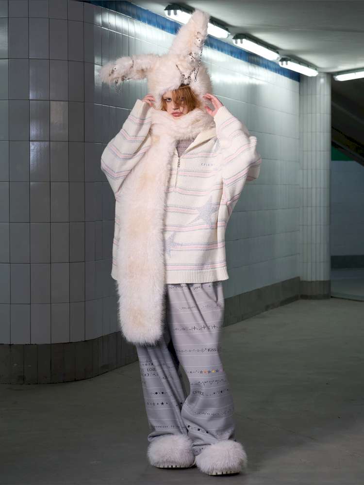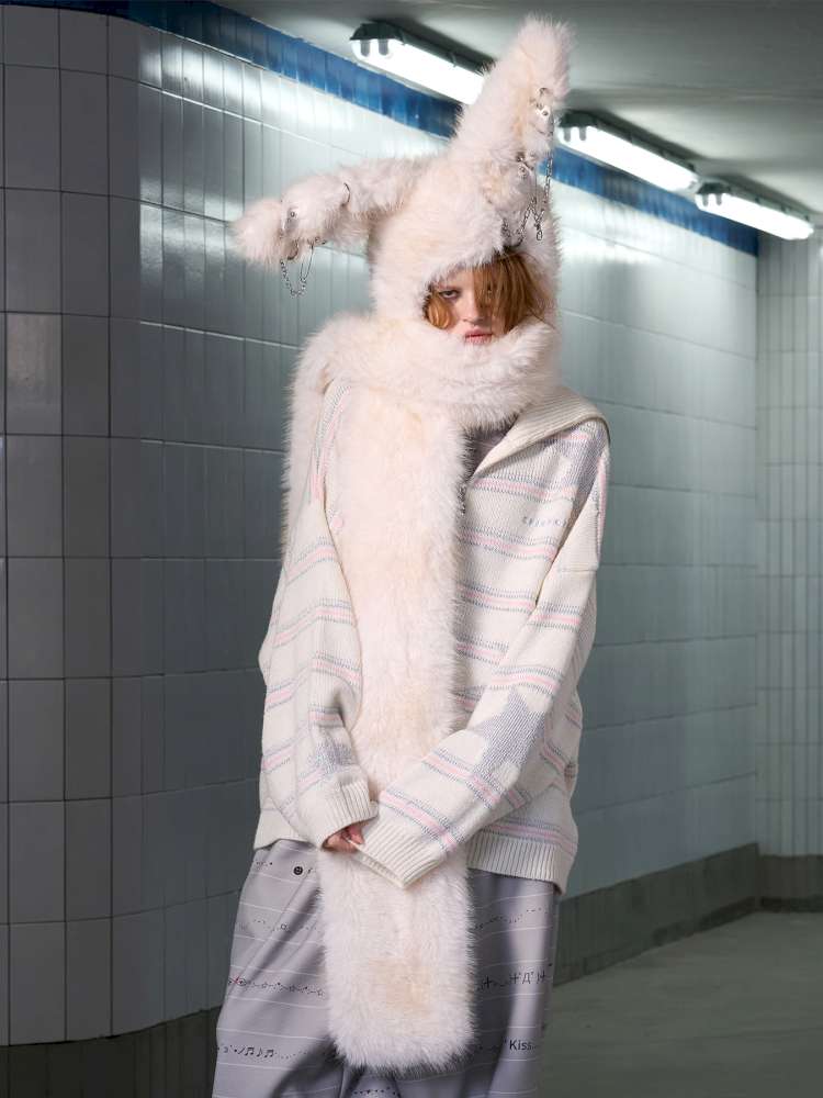 Long Hair Contrast Patch Hat Scarf【s0000014639】