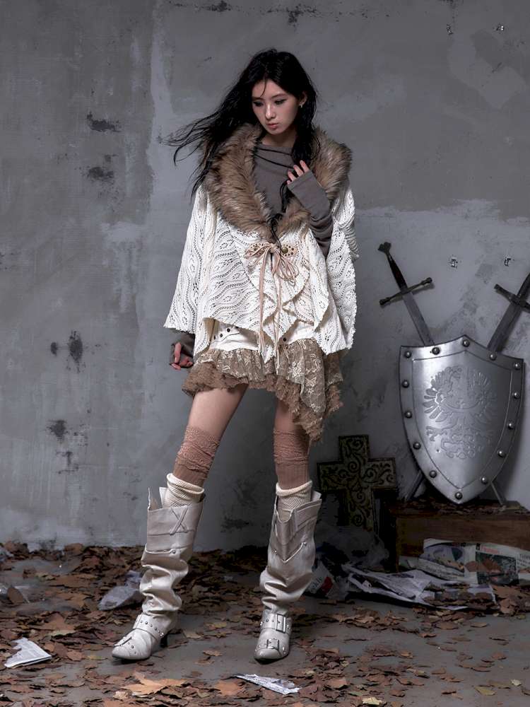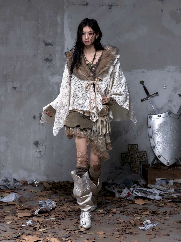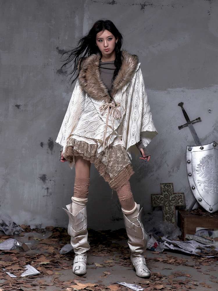 Knit Fur Collar Shawl Cape【s0000014659】