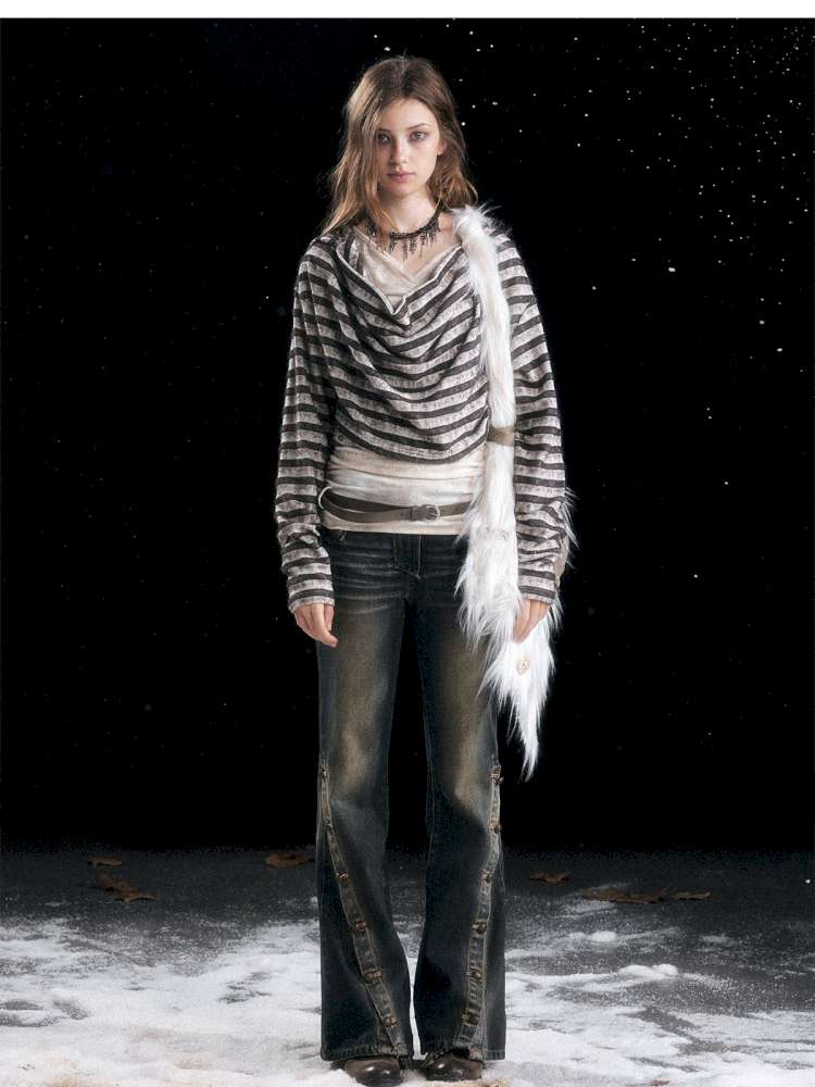 Striped Distressed Hooded Top【s0000014674】