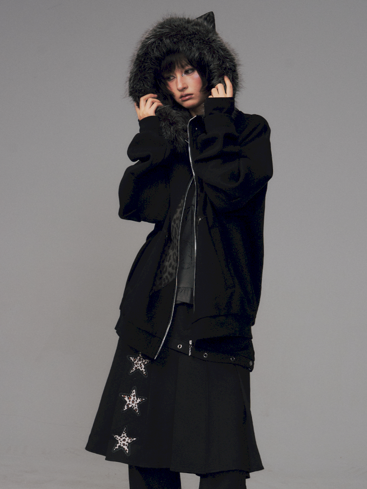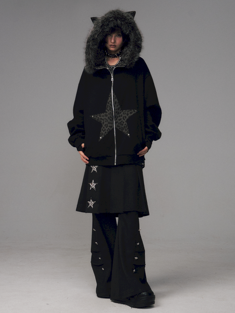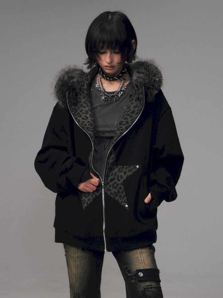 Cat Ears Leopard Print Fleece Hooded Jacket【s0000014708】
