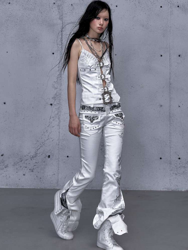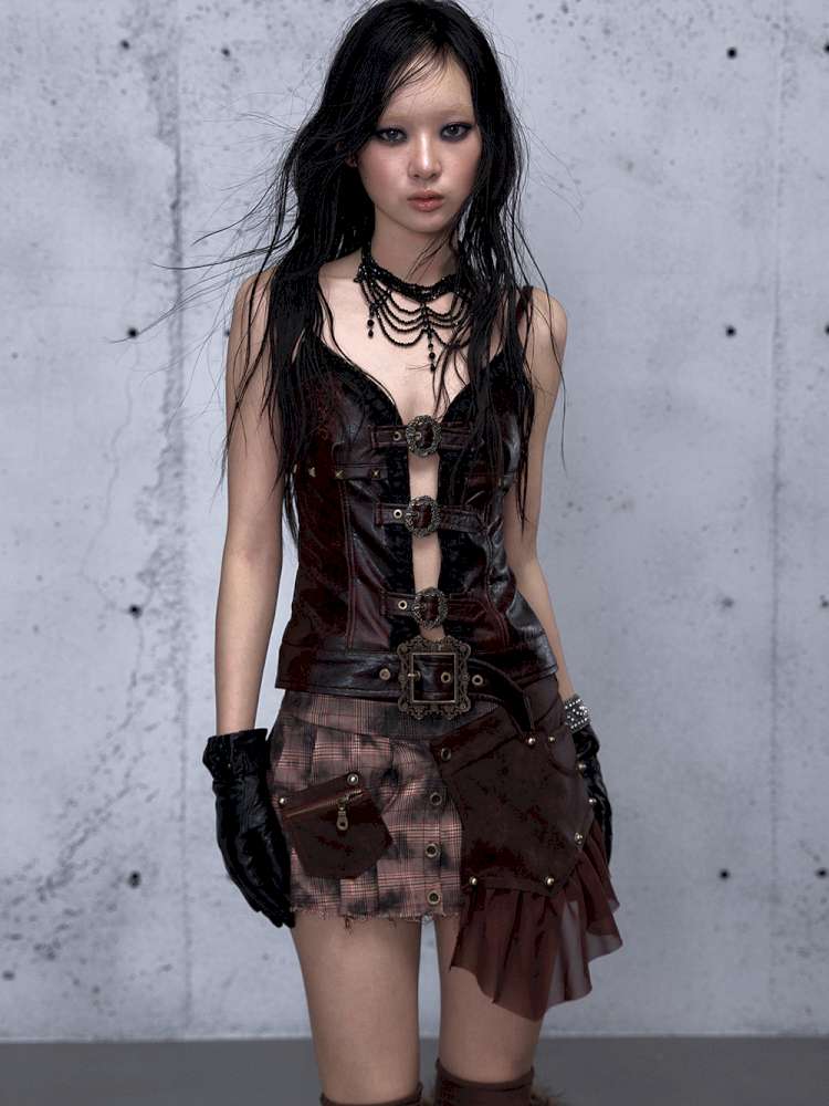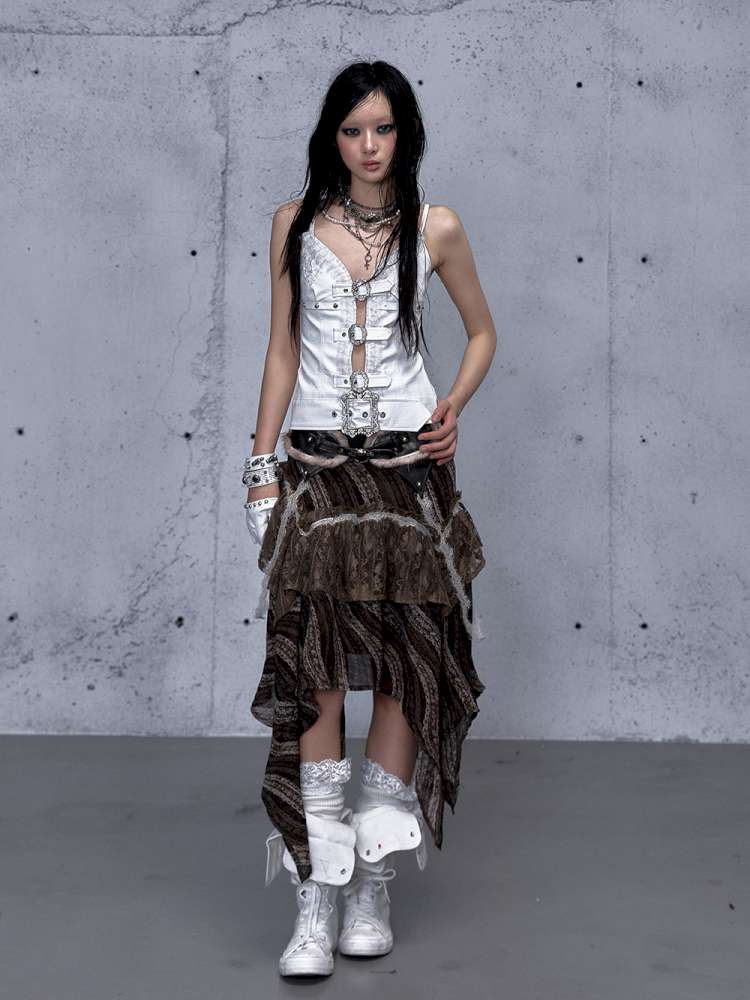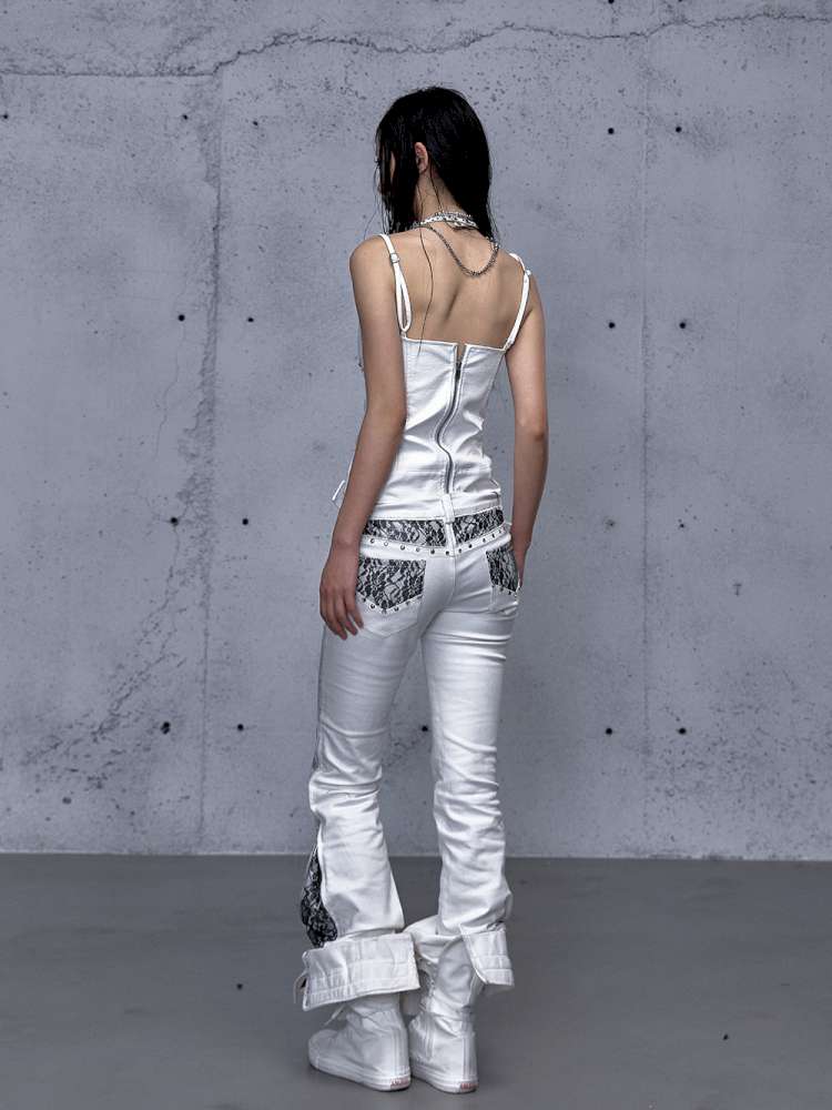 Dark Court Openwork Lace Leather Camisole【s0000014920】