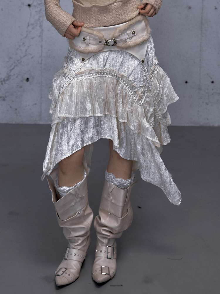 Vintage Lace Irregular Velvet Skirt【s0000014930】