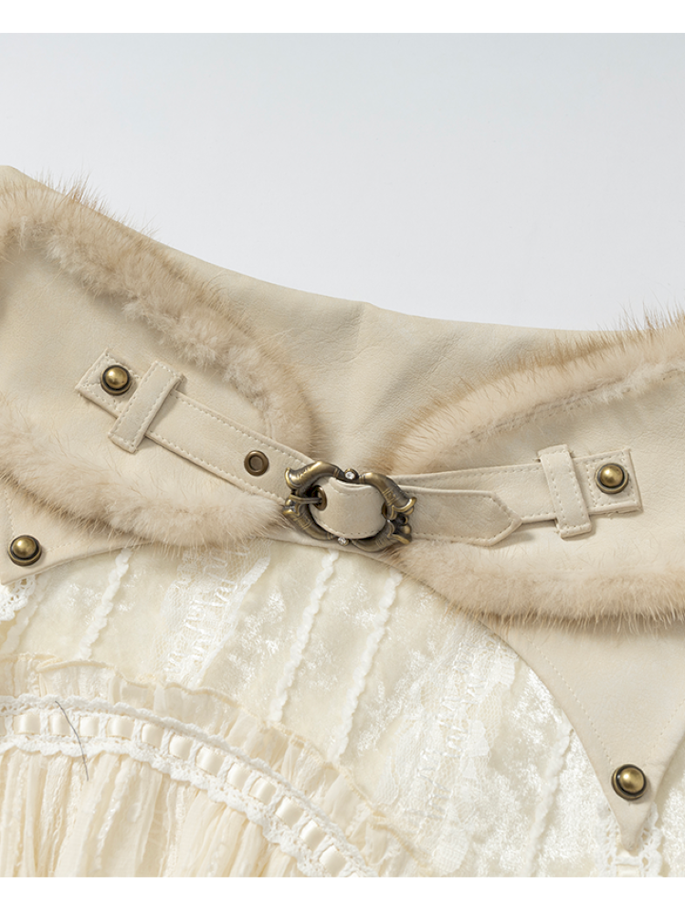- Material:Off-white: Leather 50% PU 50% Body: Polyester 95% Spandex chiffon 5% Polyester fiber 100% Green: Leather 45% PU 55% Viscose Body: Polyester 100% Lace: Polyester 100%