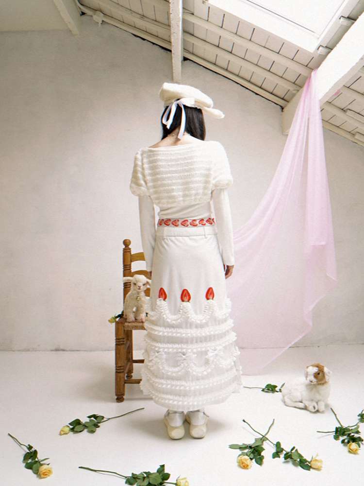 Draped Collar Bow Knitted Two-Piece Top【s0000014938】
