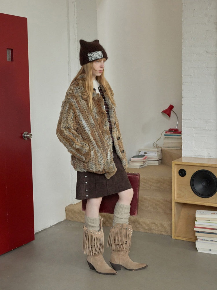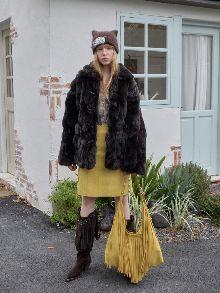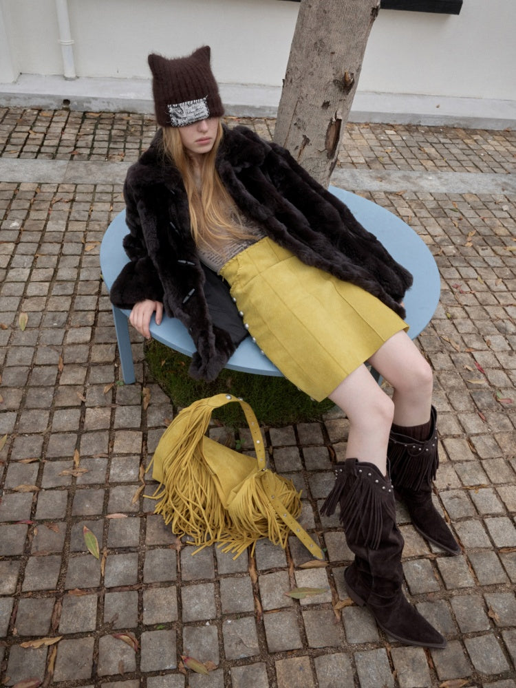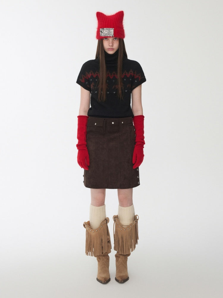 Vintage Suede Riveted High-Waisted A-Line Midi Waist With Rope Design Skirt【s0000014959】