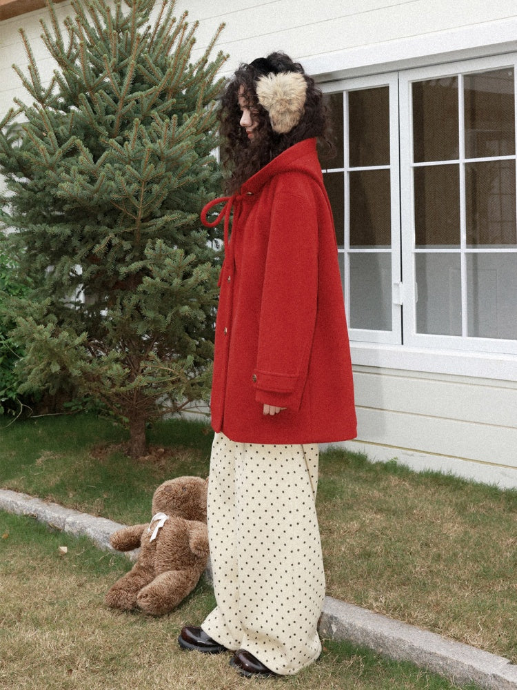 "Fallen Star" Peaked Hat Sheep Woolen Mid-Length Coat【s0000015008】