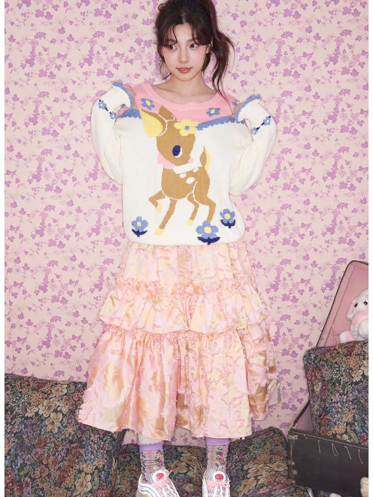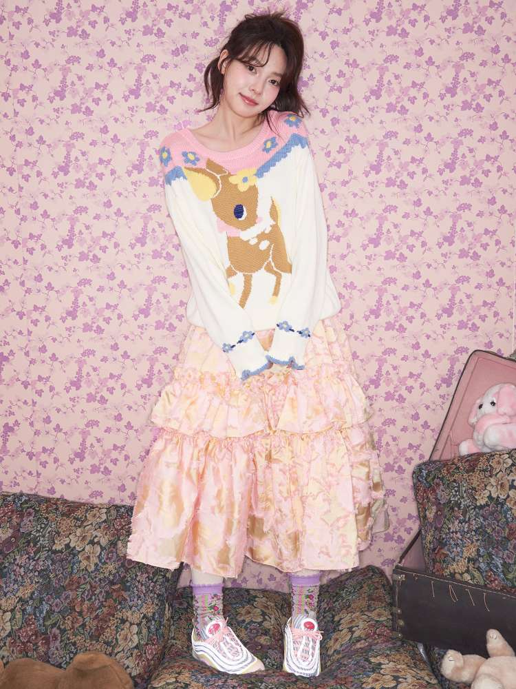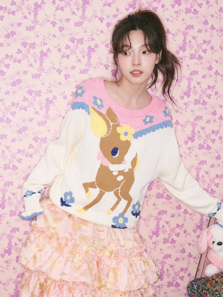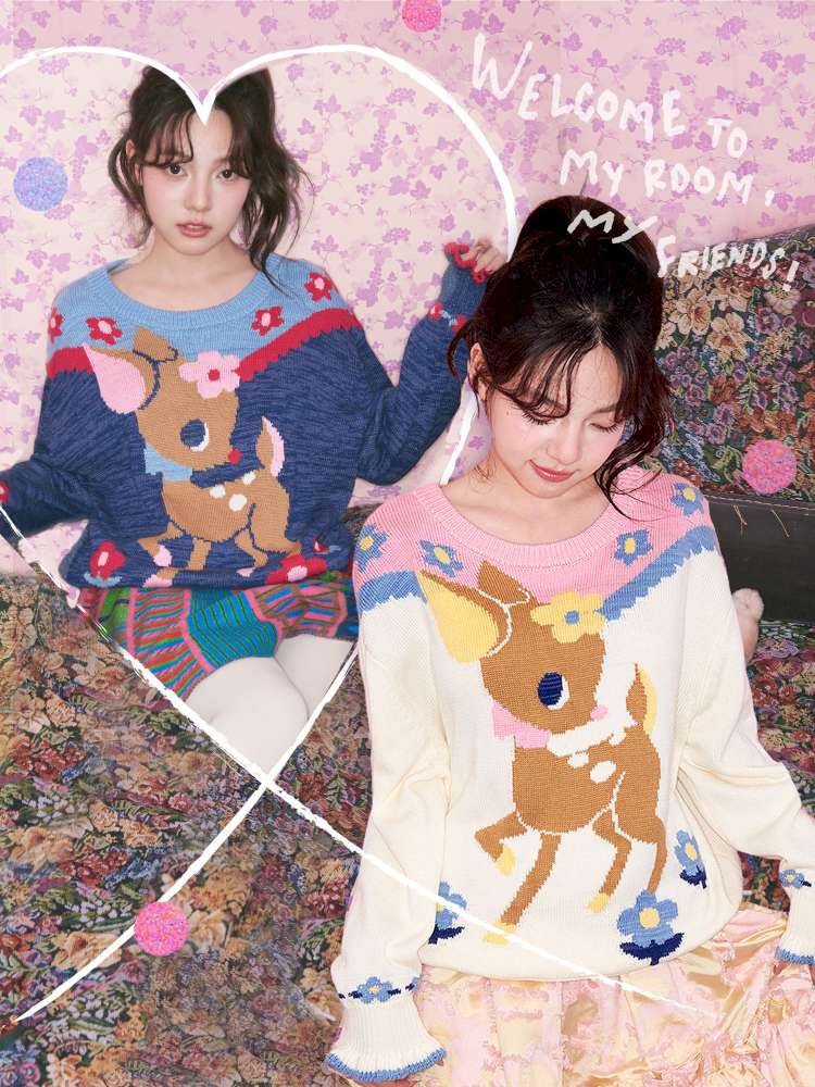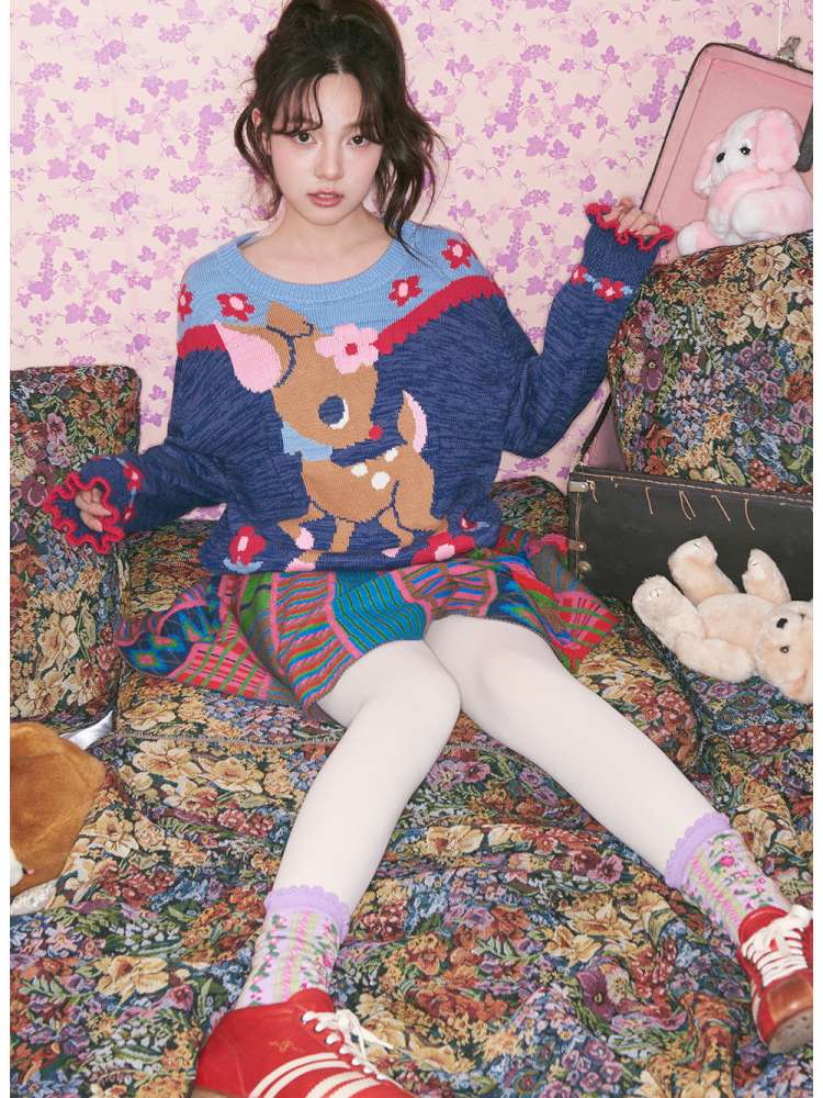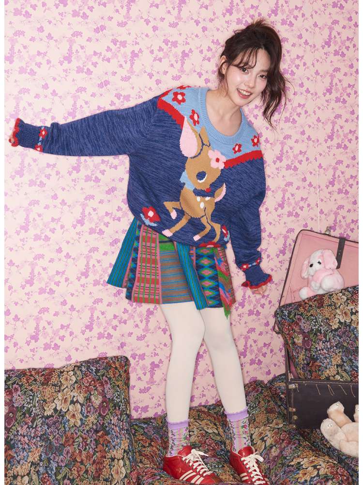 Navy Blue Off-white Fawn Sweater【s0000015025】