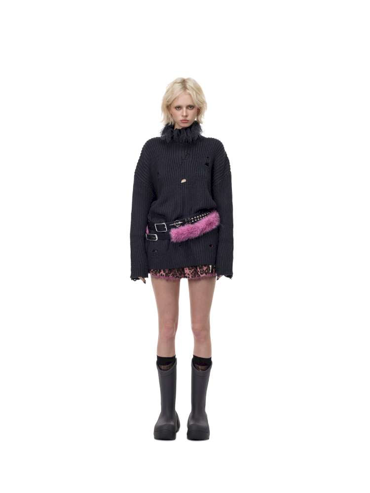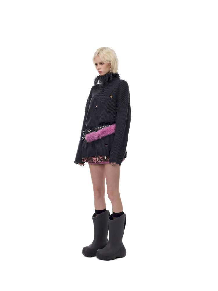 Black Metal Rock Rivet Wool Belt【s0000015131】