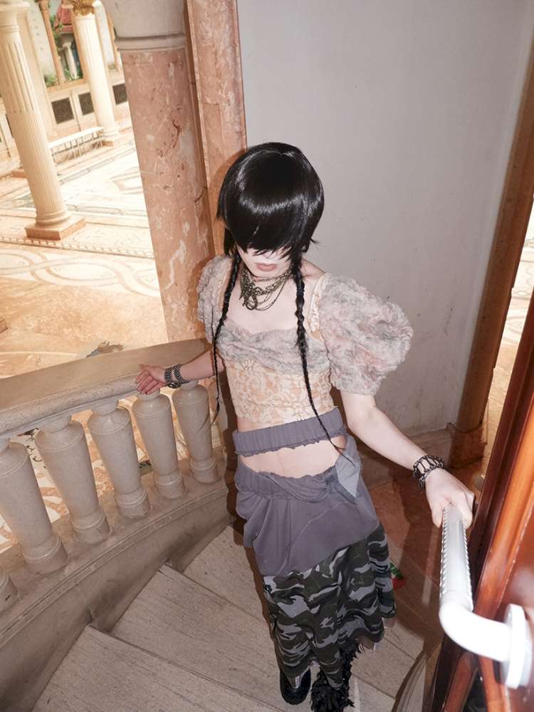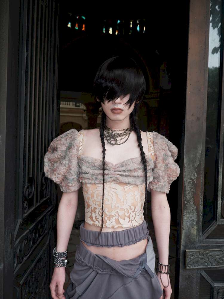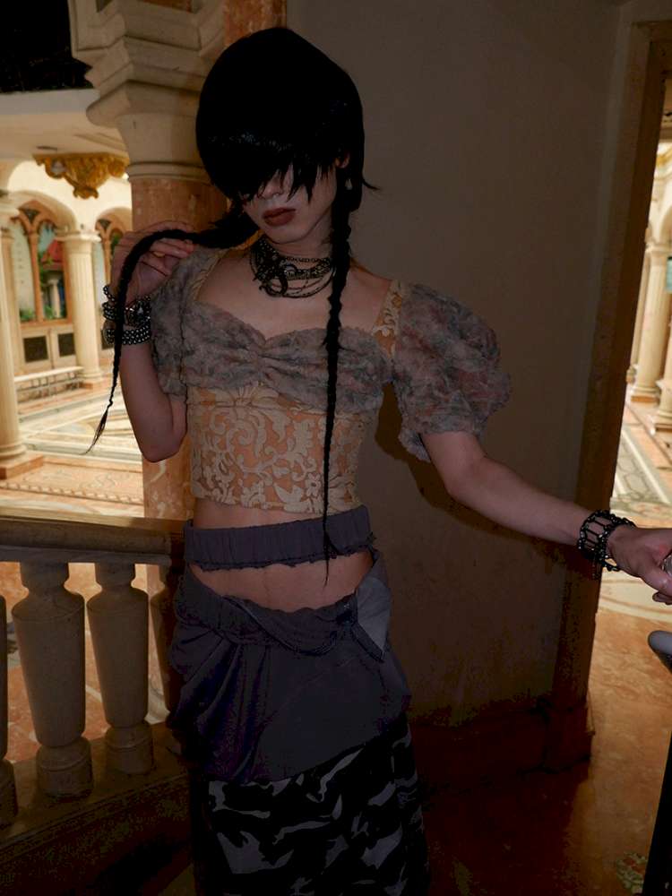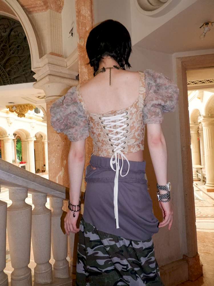 Patchwork Sheer Bud Strap Court Top【s0000015145】
