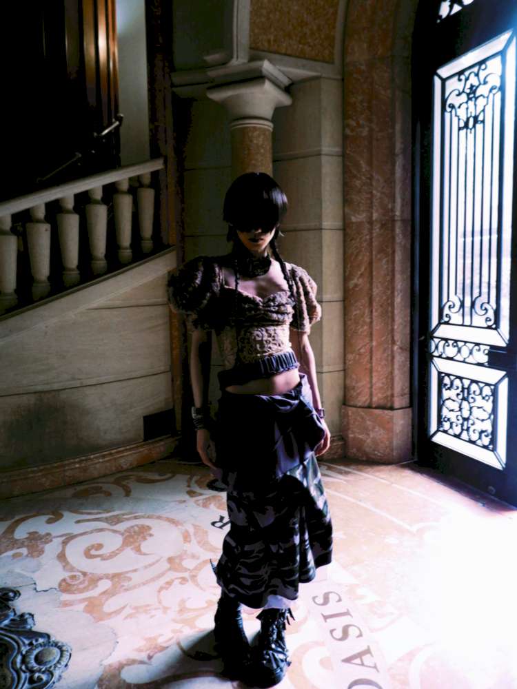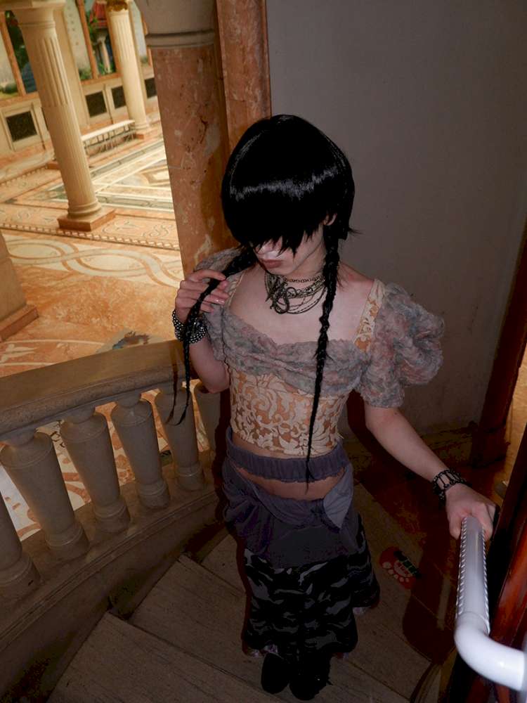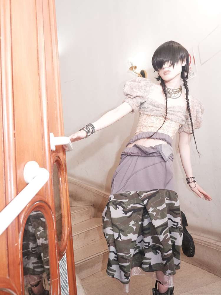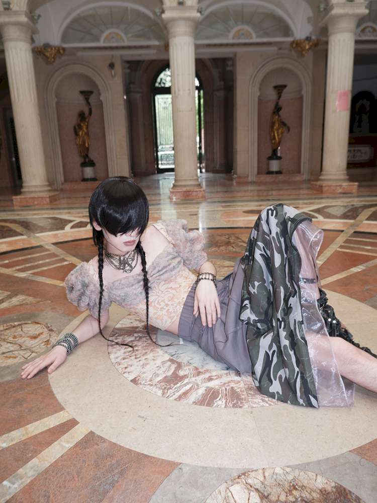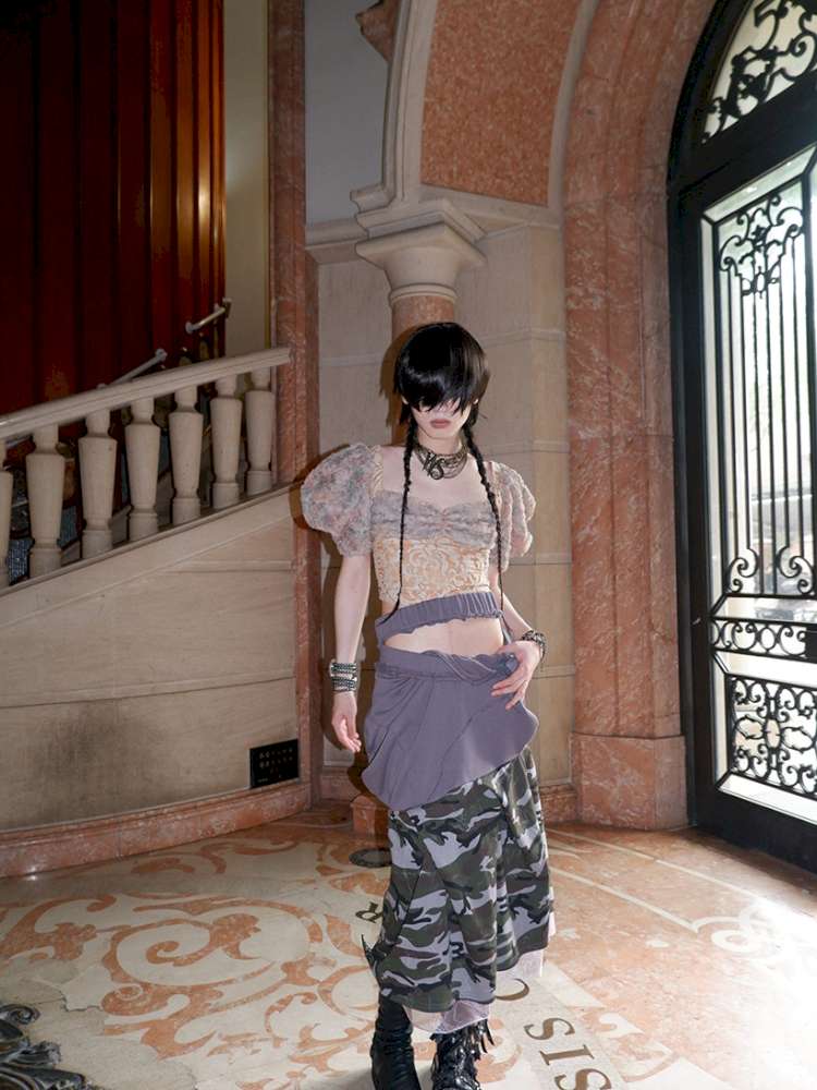 Patchwork Sheer Bud Strap Court Top【s0000015145】