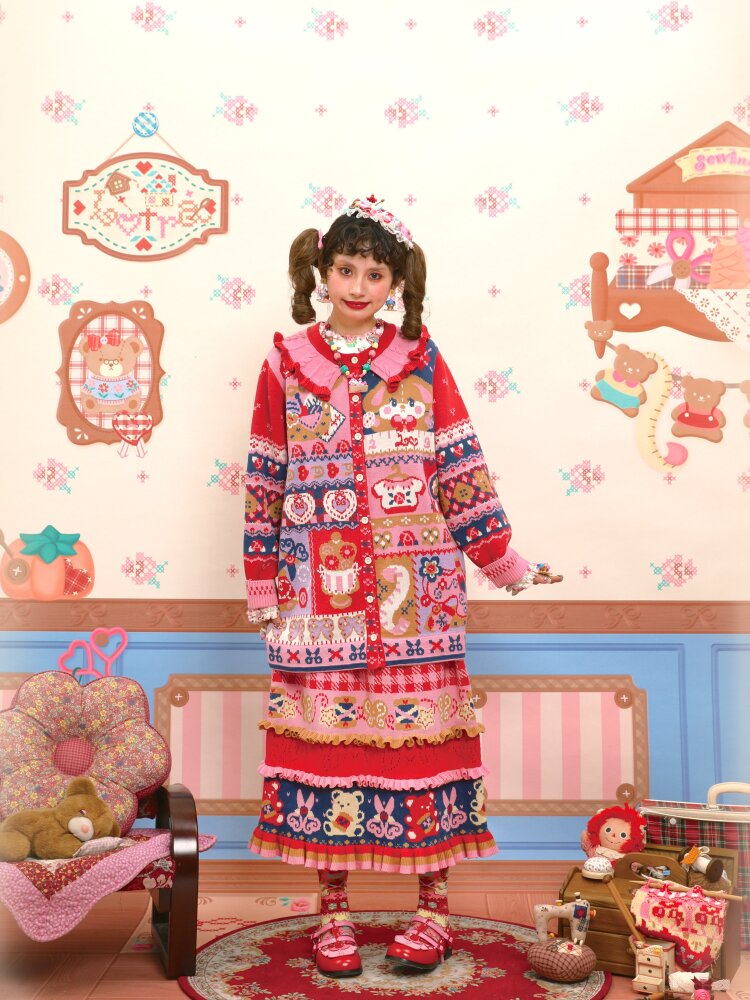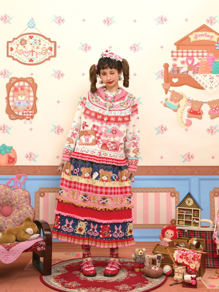 Red Navy Blue Lace Knitted Skirt【s0000015569】
