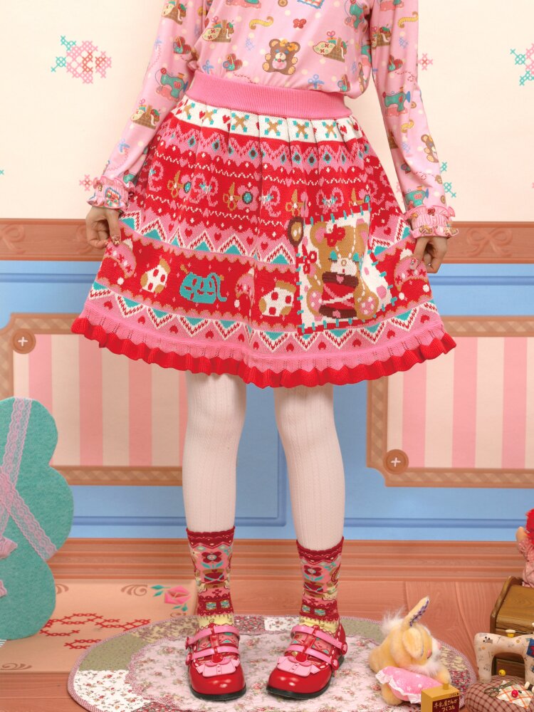Red Fair Island Bear Lace Skirt【s0000015571】