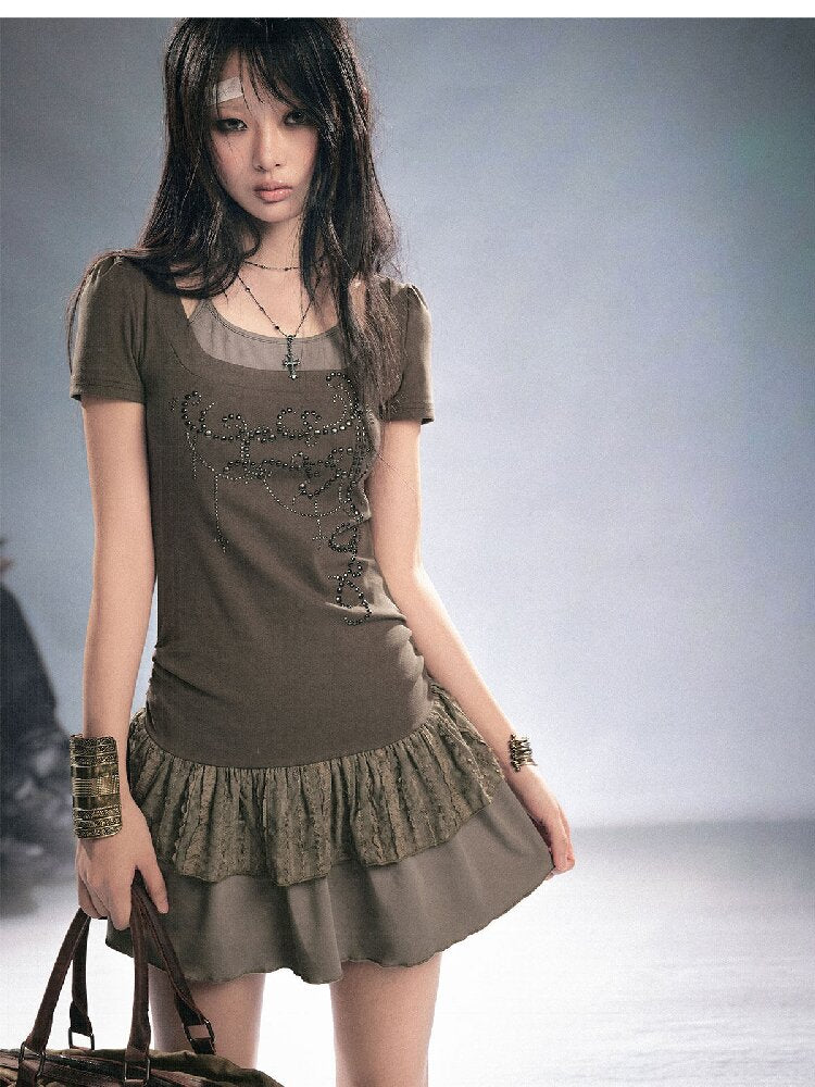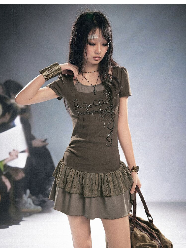Studded Lace Stitching Slip Dress【s0000016218】