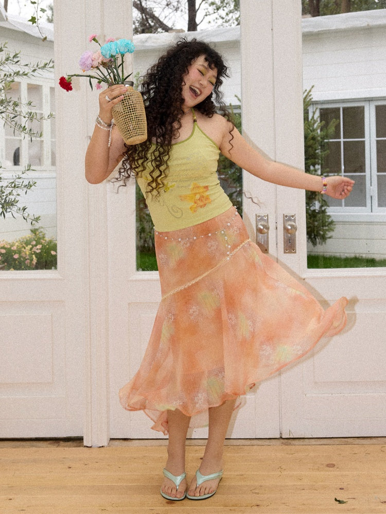 Irregular Chiffon Full Print Lace Skirt【s0000016306】