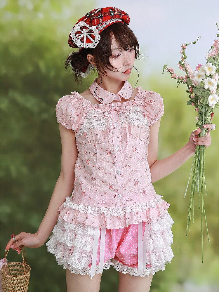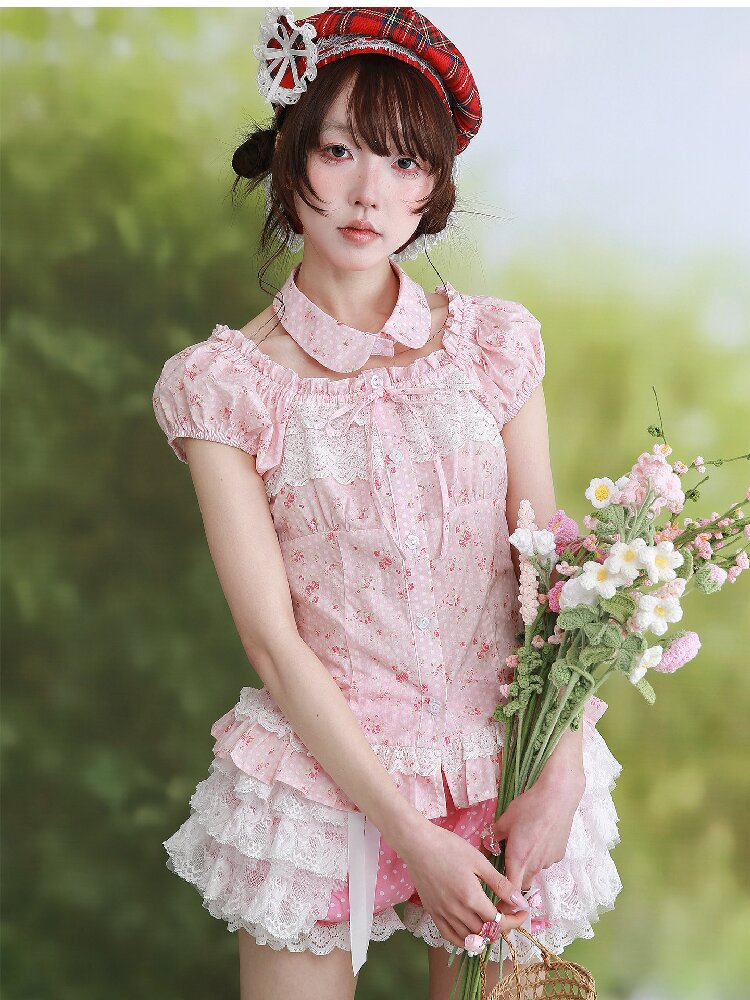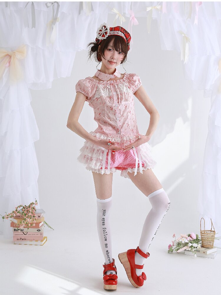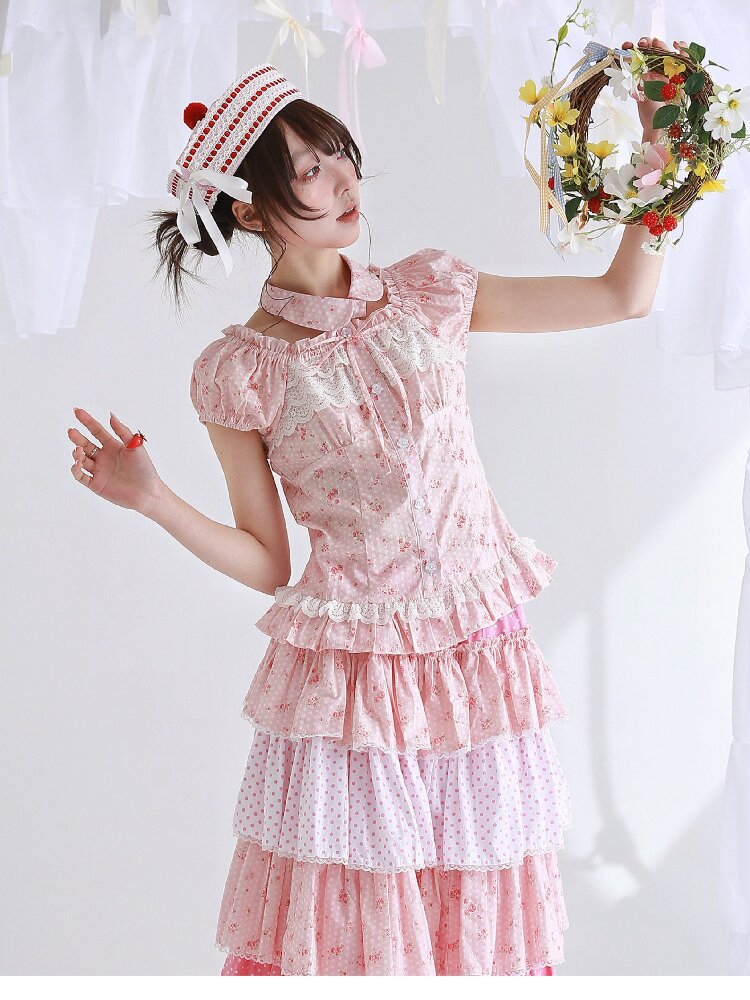 Pink Polka Dot Short Sleeve Shirt【s0000016555】