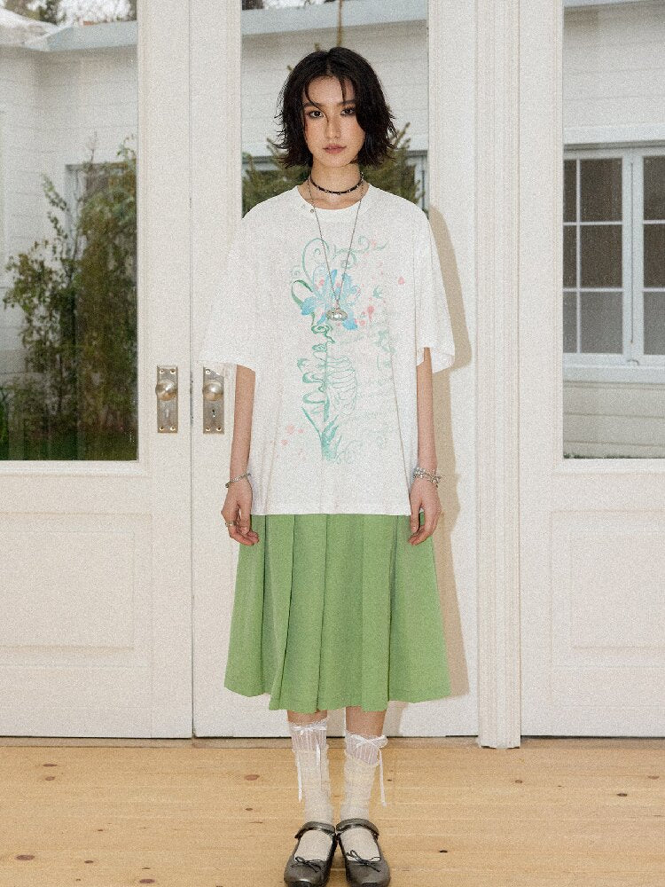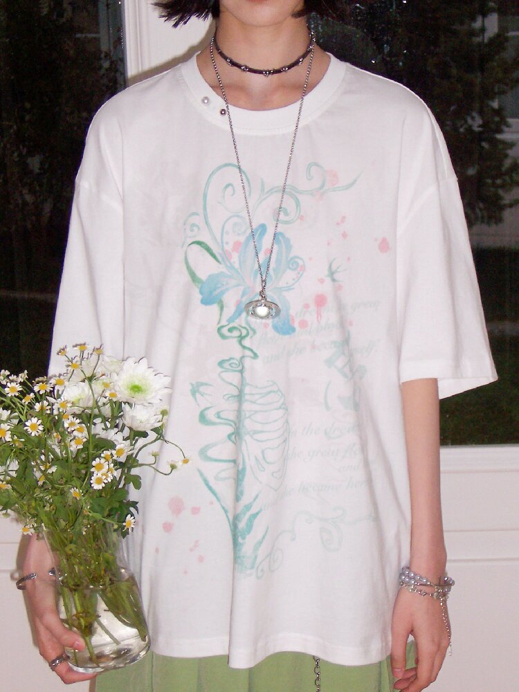 Pearl Print Dropped Shoulder Tee【s0000016662】