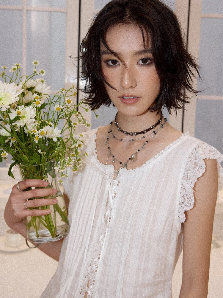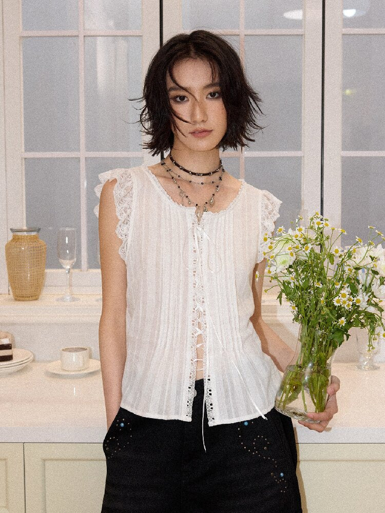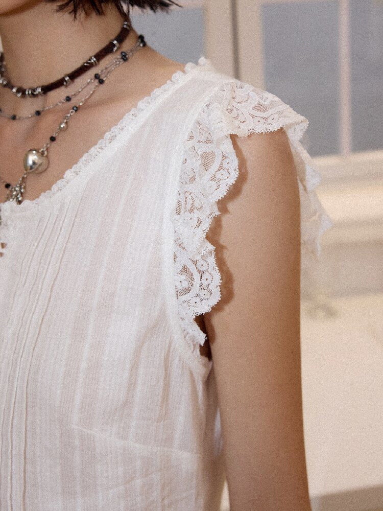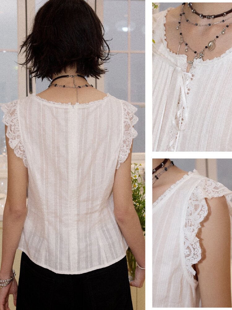 Patchwork Lace Flying Sleeve Shirt【s0000016664】
