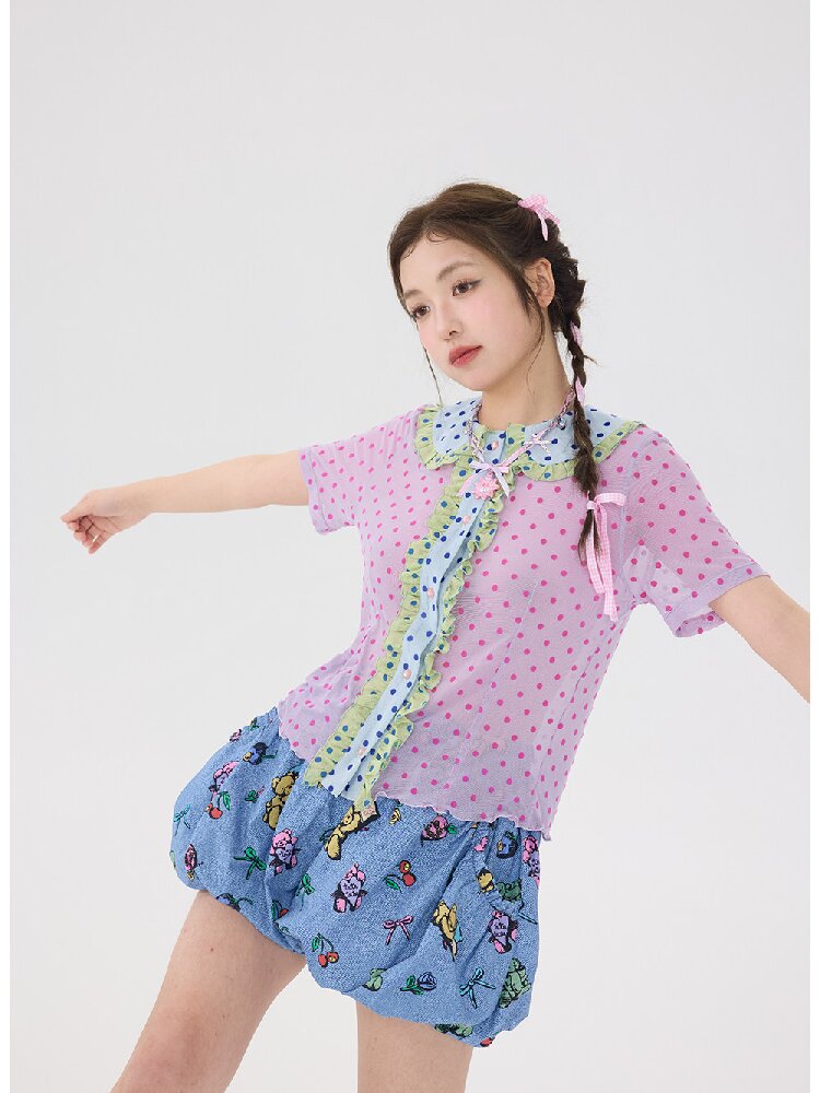 Denim Bear Printed Pumpkin Pants【s0000016706】