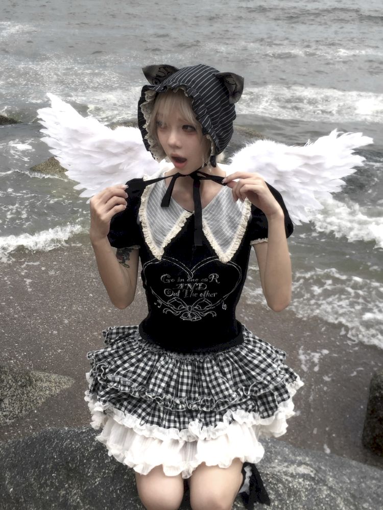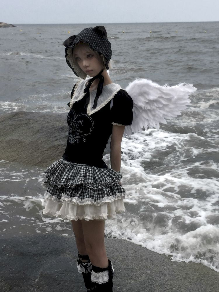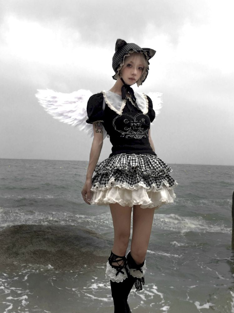 Plaid suit T-shirt/cake skirt【s0000012434】