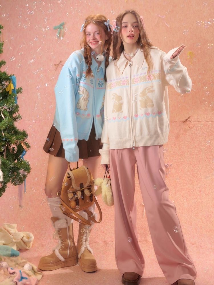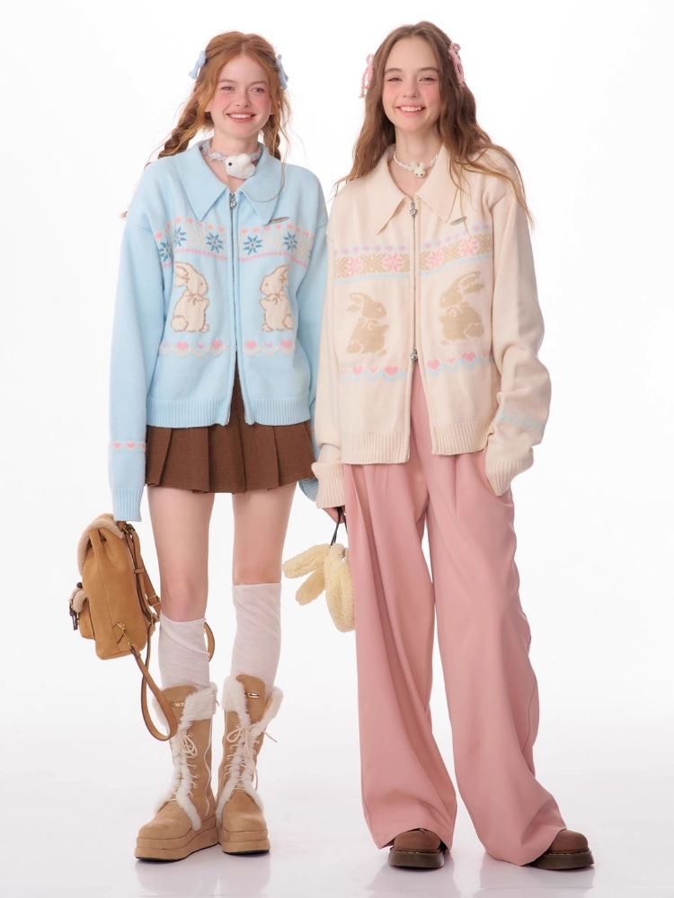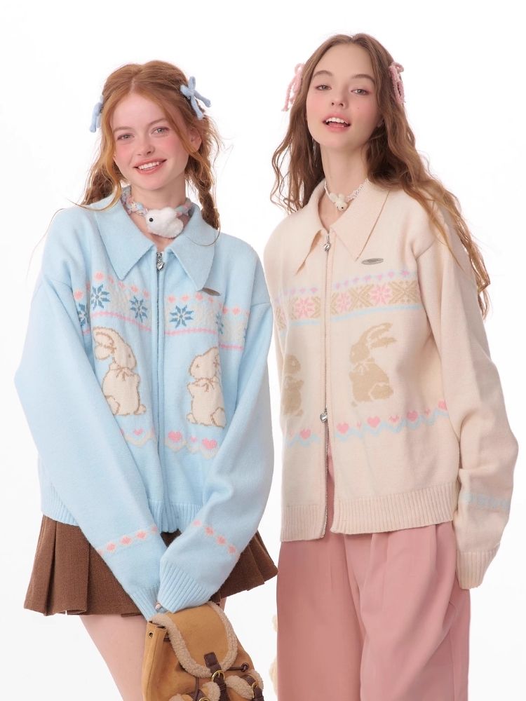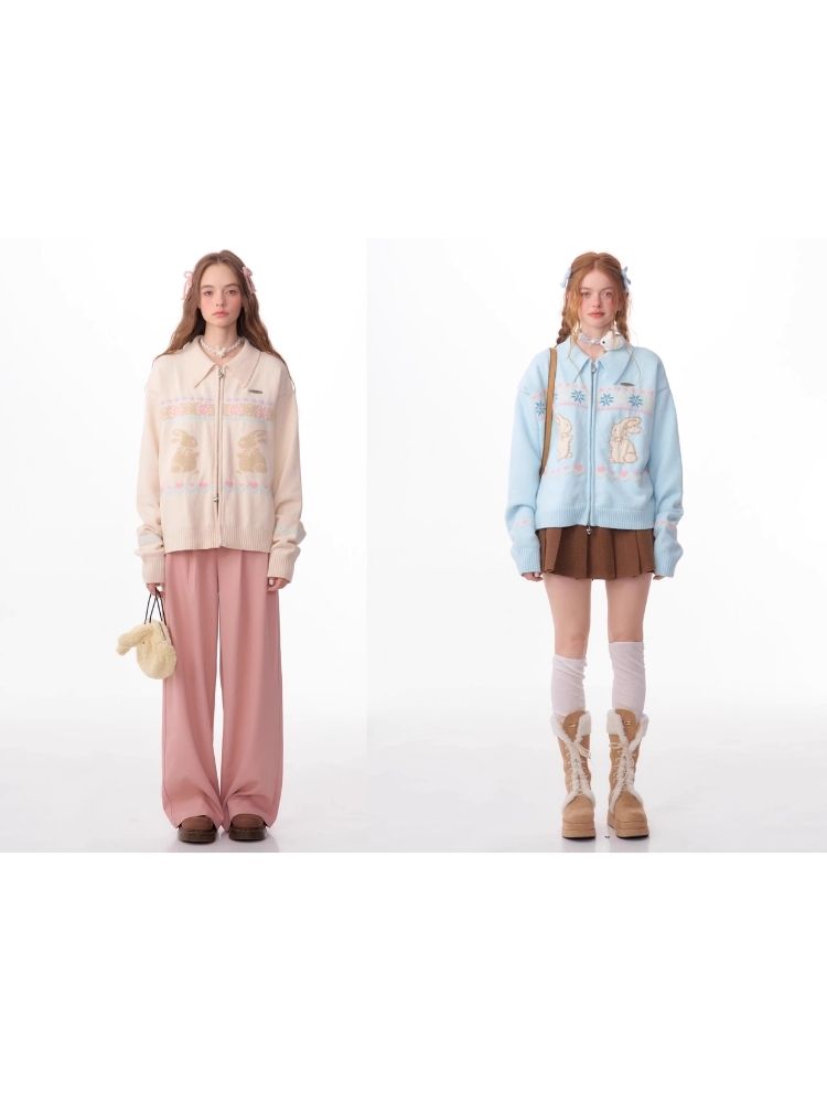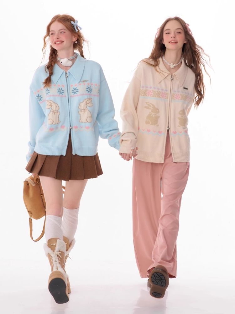 Rabbit Fair Isle polo neck zipper sweater【s0000006167】