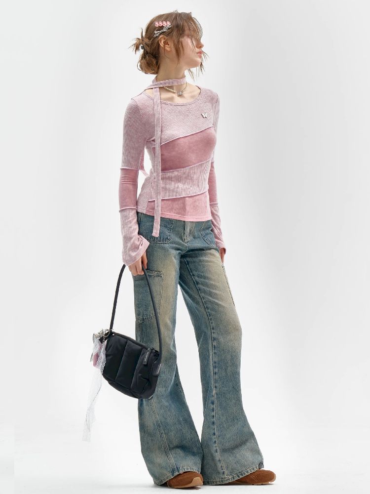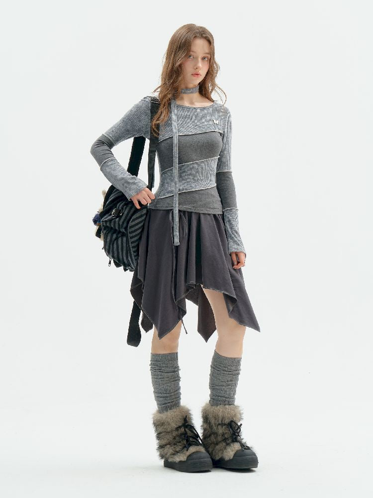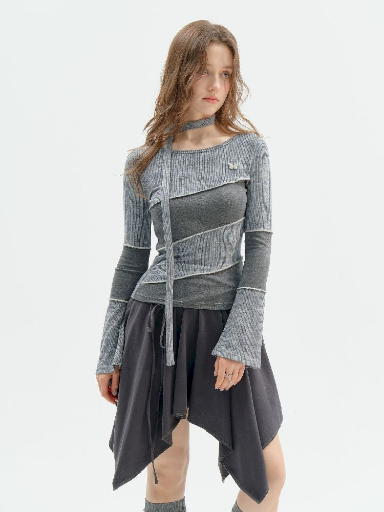 Splicing Collar Long Sleeve T-Shirt【s0000011518】