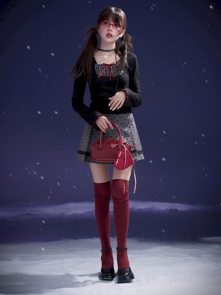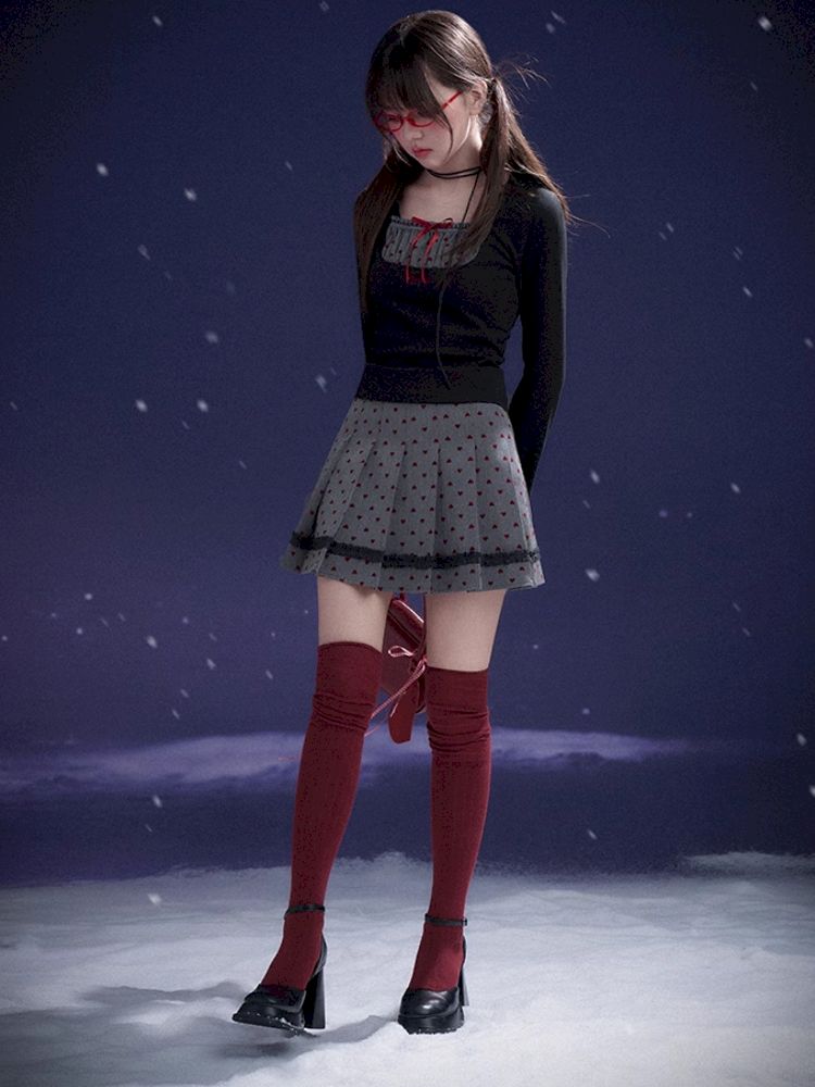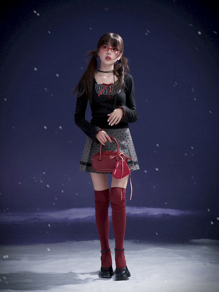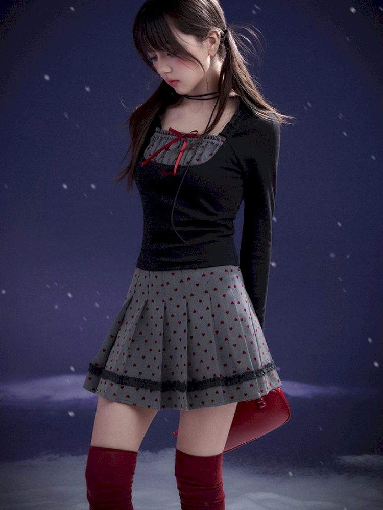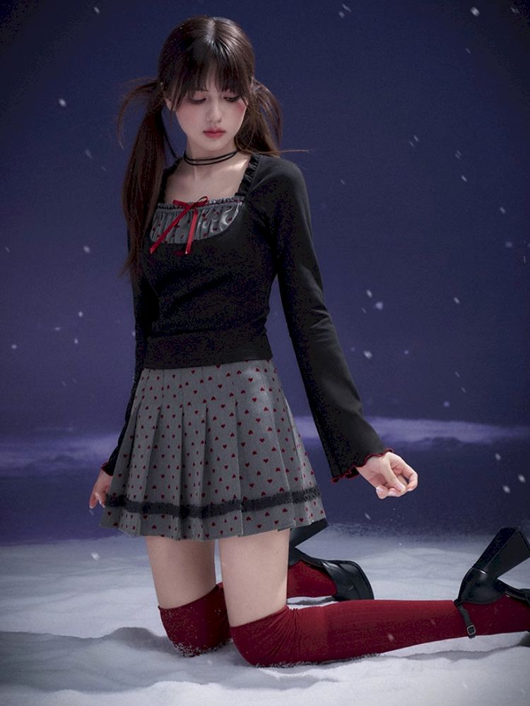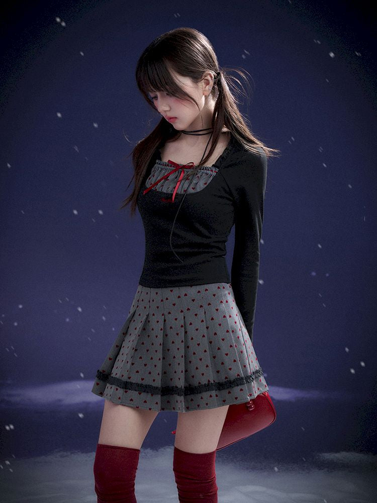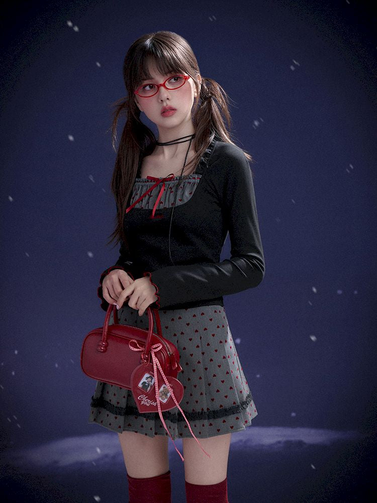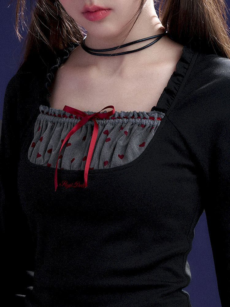 Red Sweetheart Patchwork Top【s0000011657】
