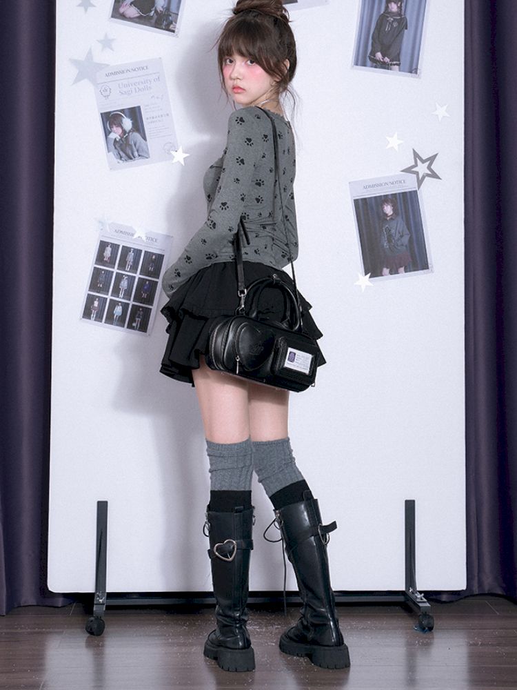 V-neck Long Sleeve Slim Printed Gray T-shirt【s0000011663】