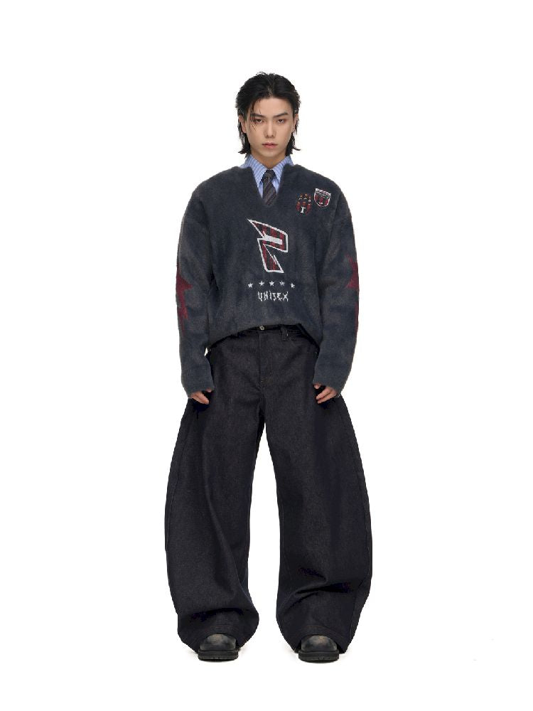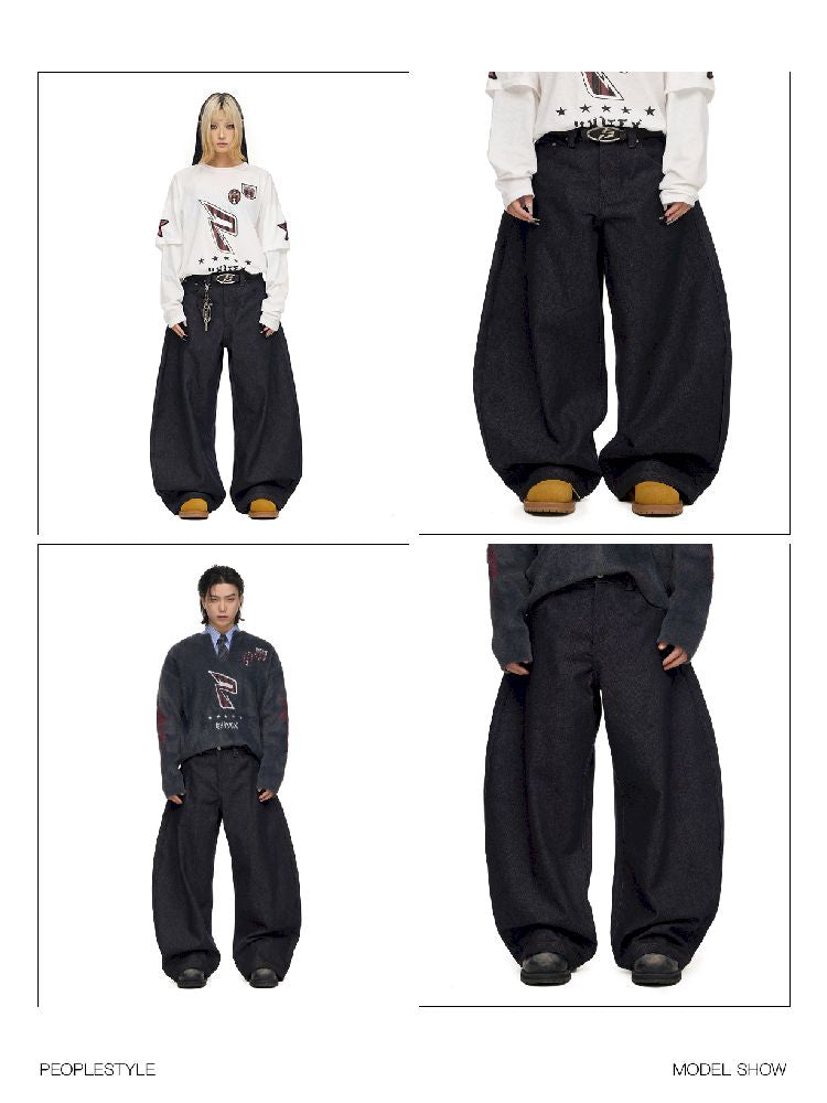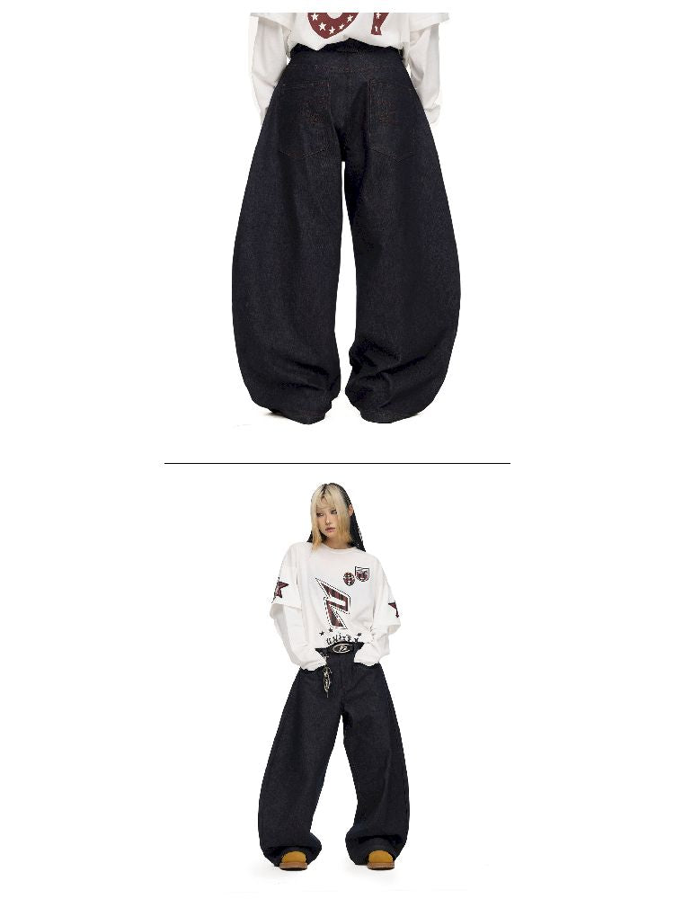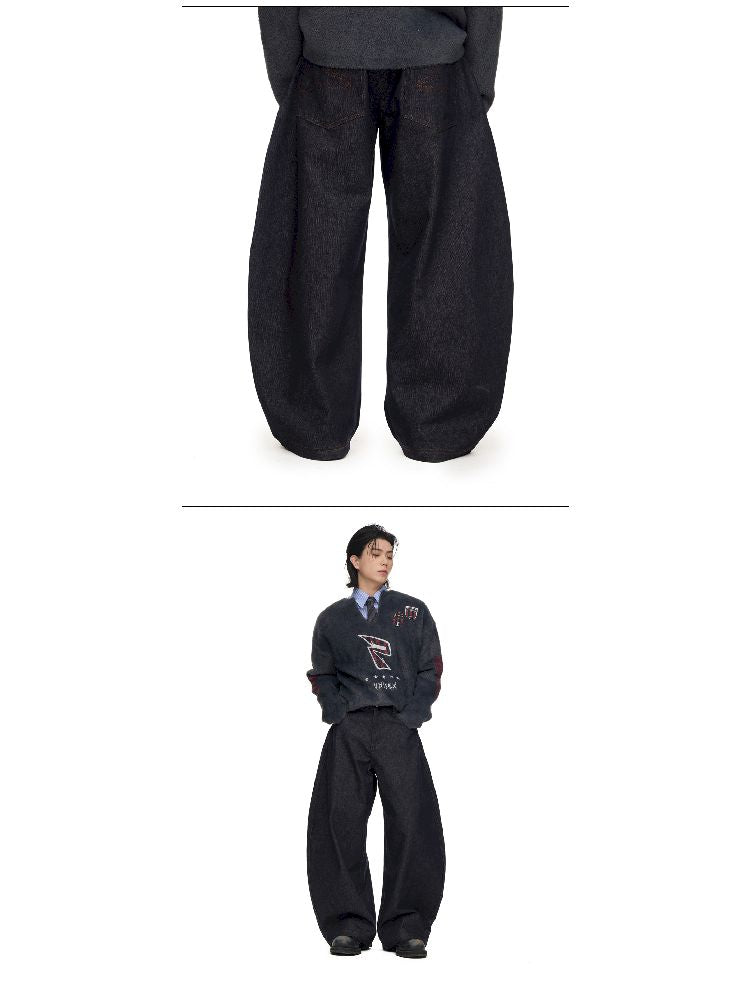 Raw Cow Denim Dark Blue Wide Leg Jeans【s0000011698】