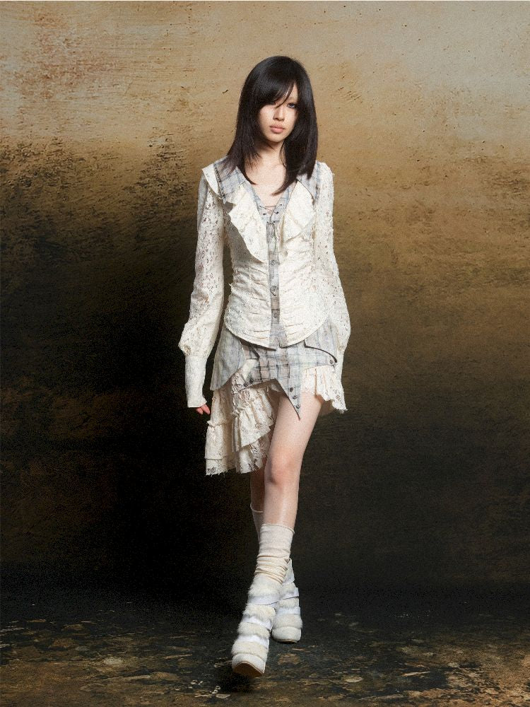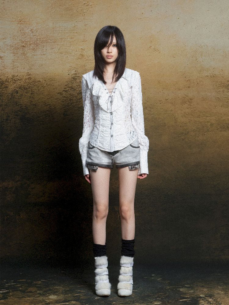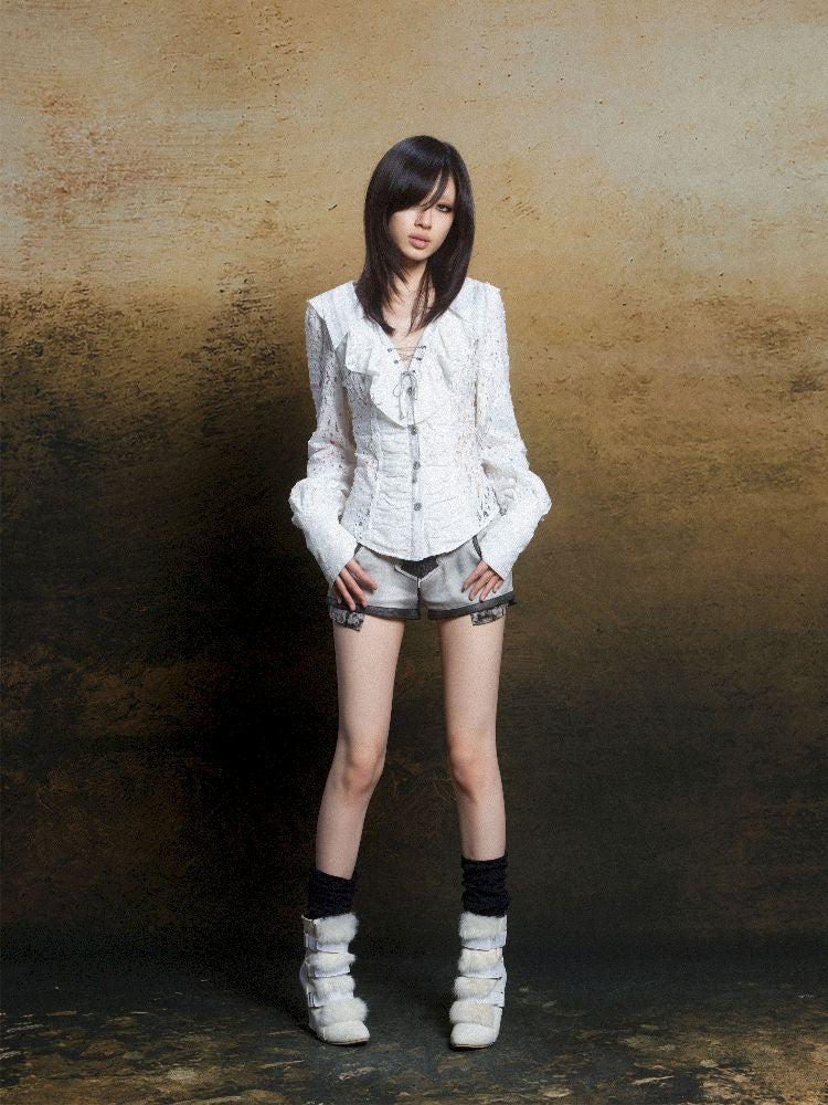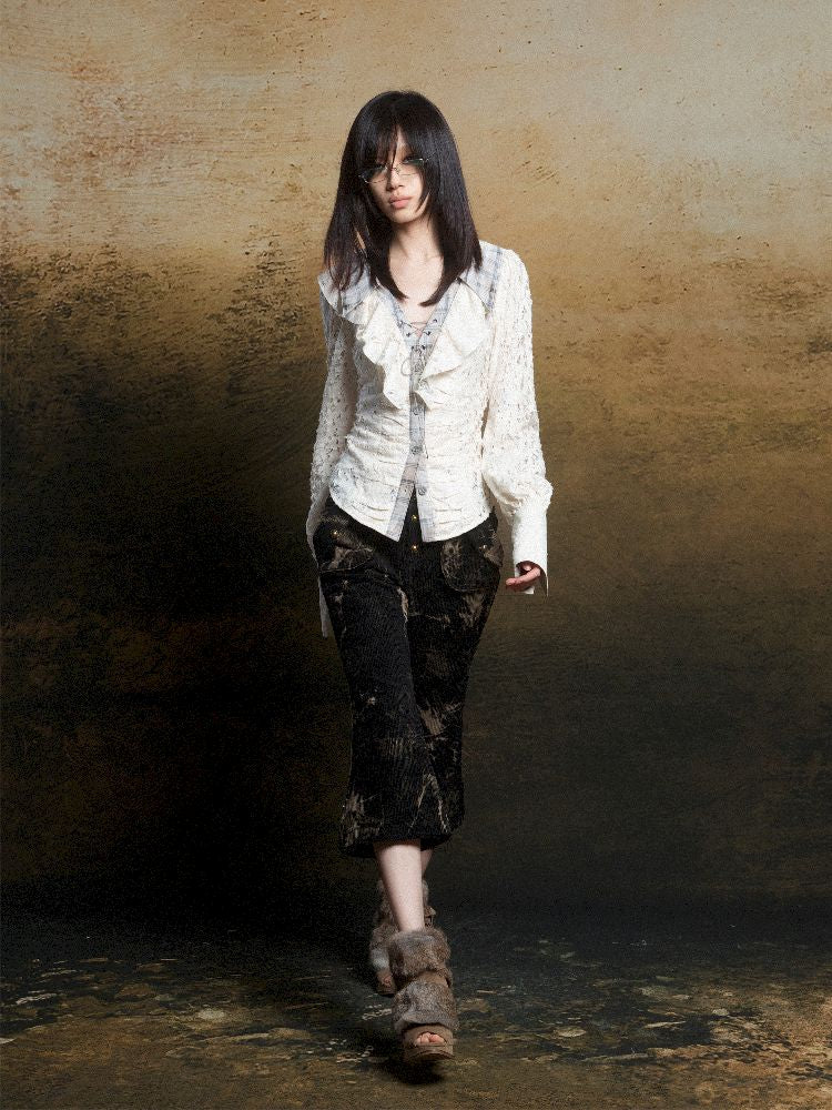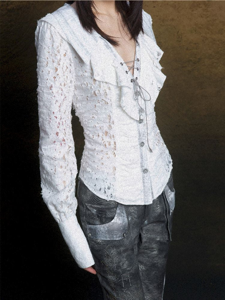 Ruffle Double Layer Collar Slim Shirt【s0000011814】