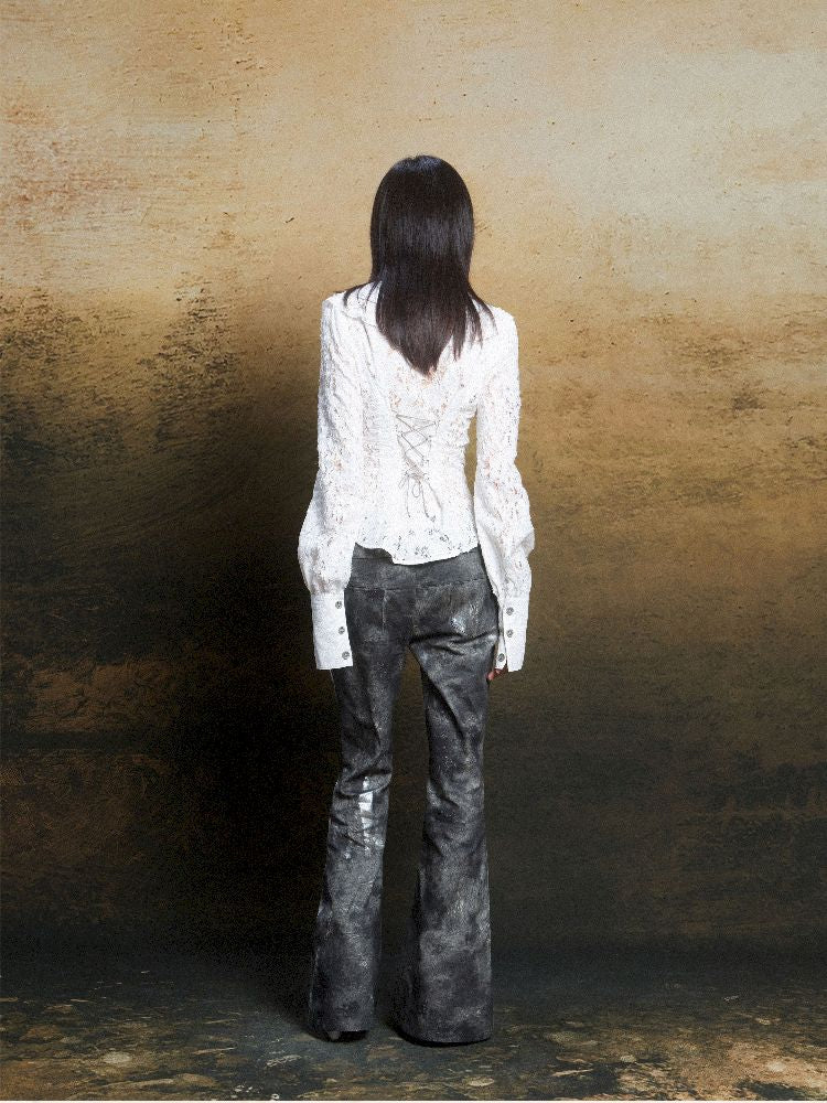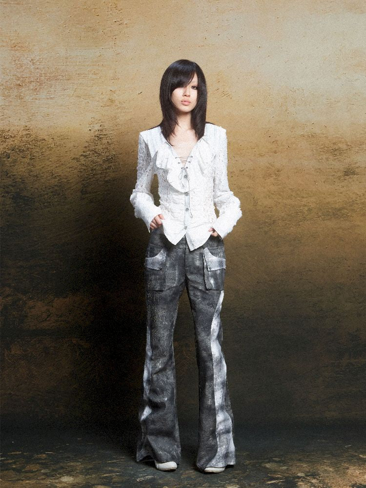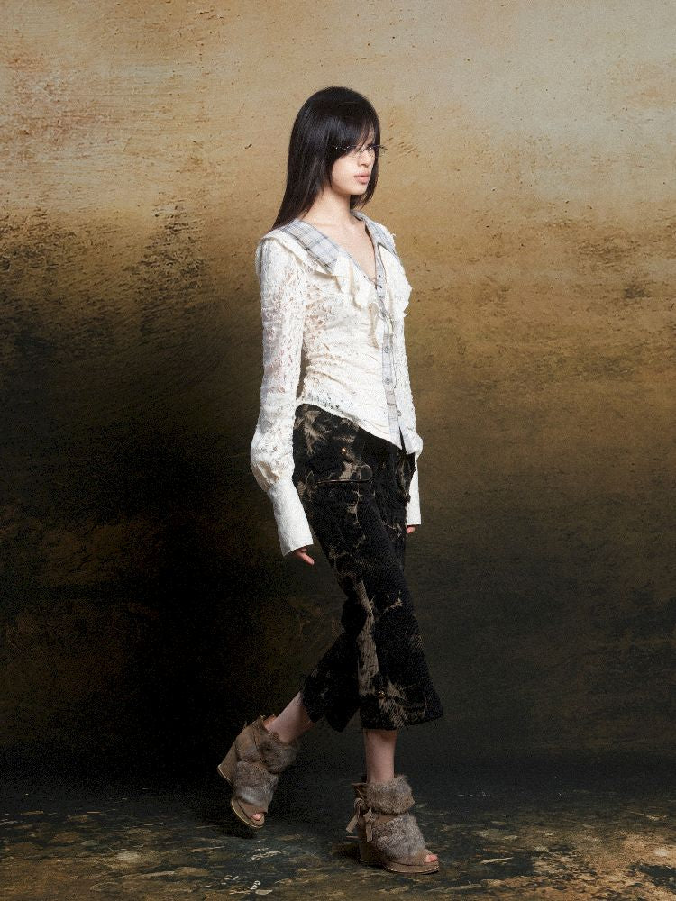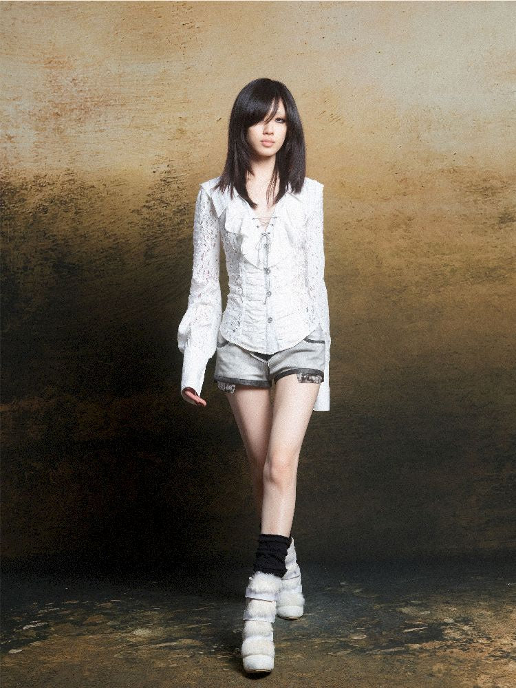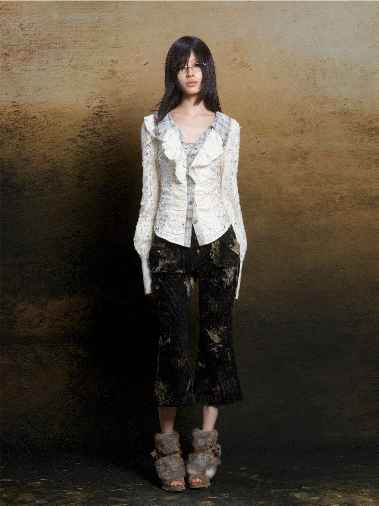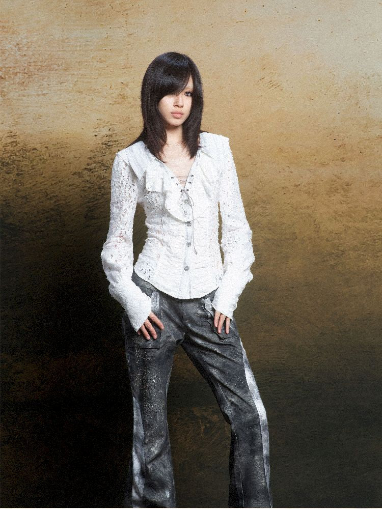 Ruffle Double Layer Collar Slim Shirt【s0000011814】
