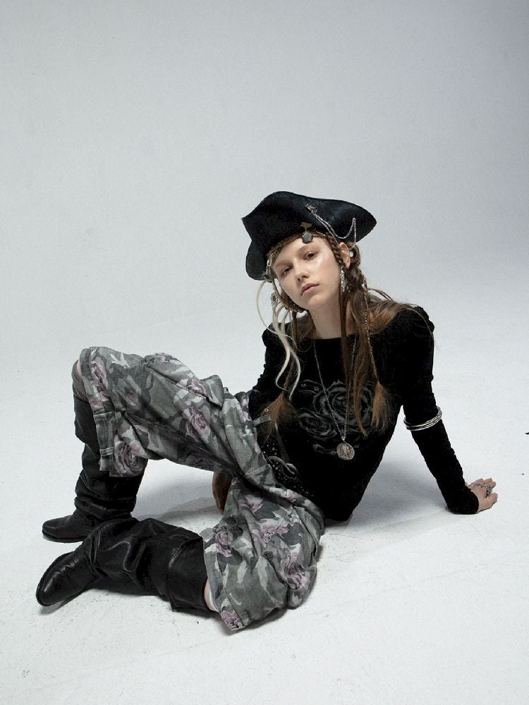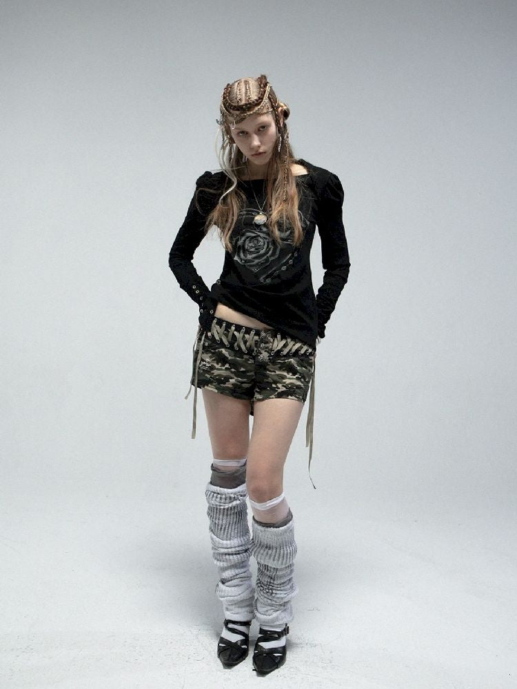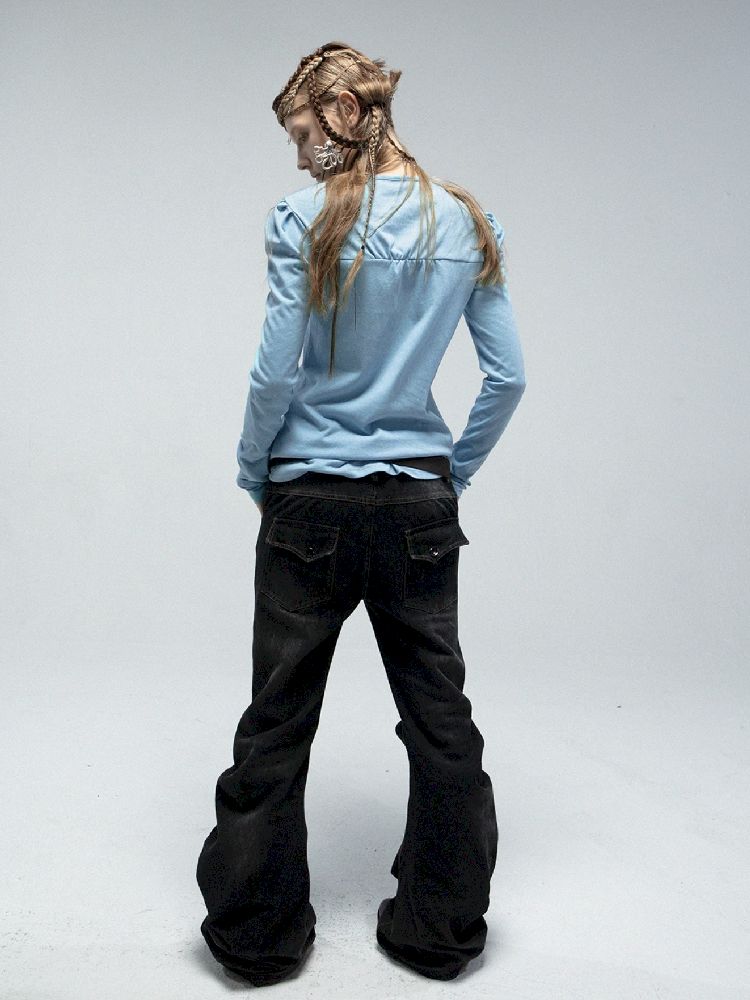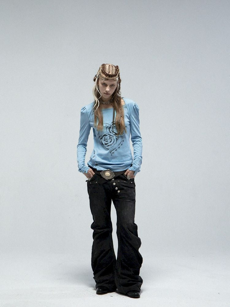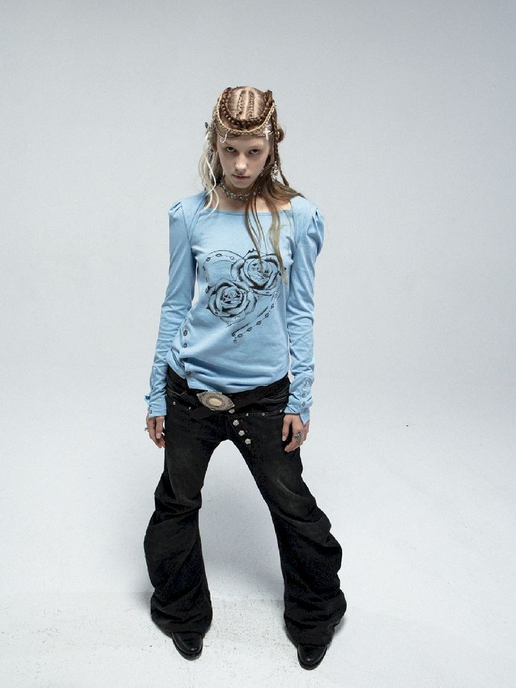 Bubble Sleeve Square Neck Printed Long Sleeve Tee【s0000011840】