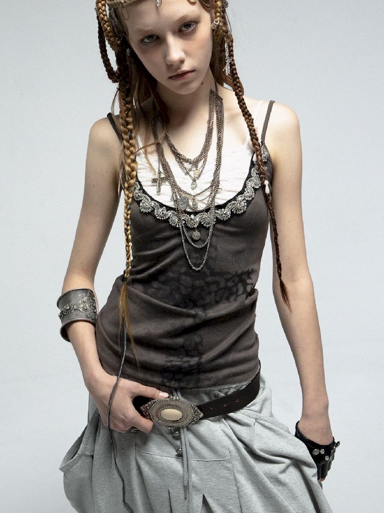 Rhinestone Cross Print Camisole【s0000012205】