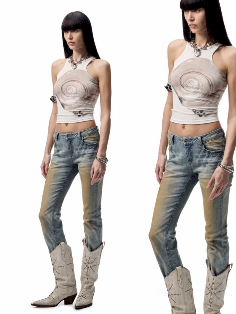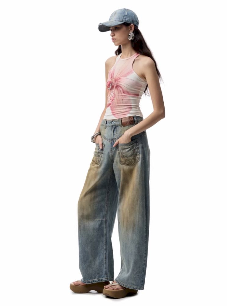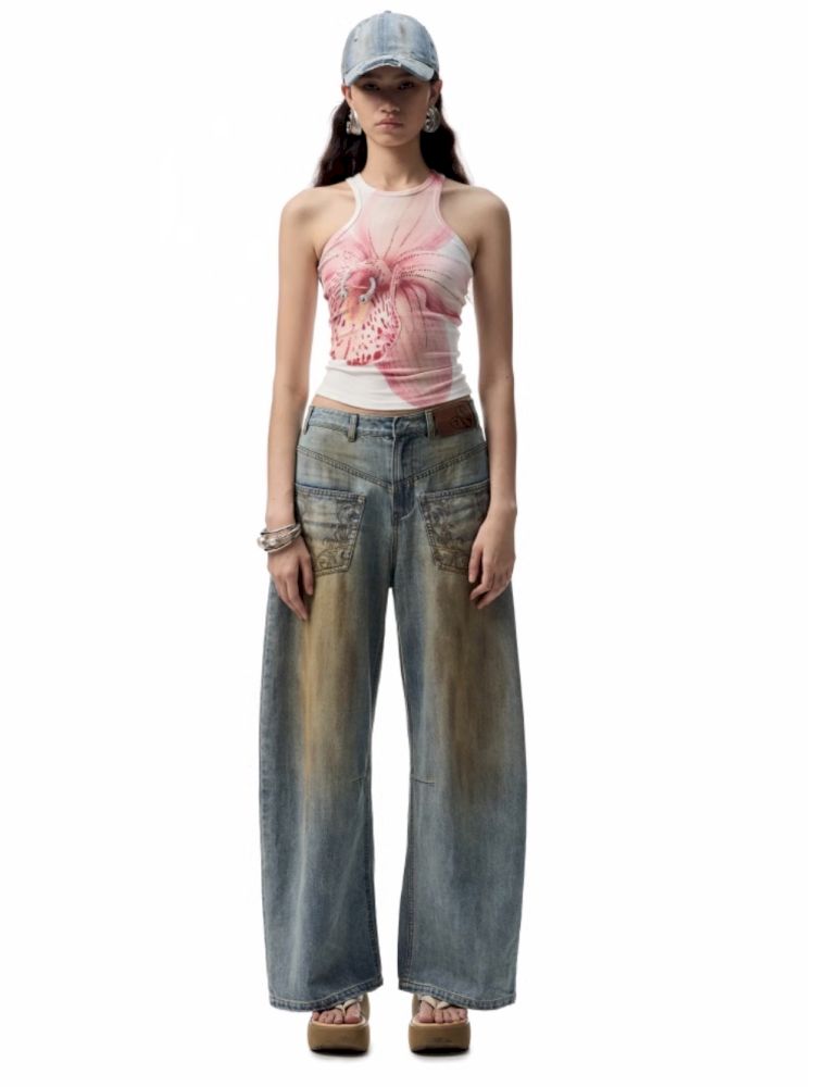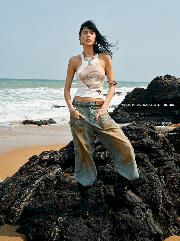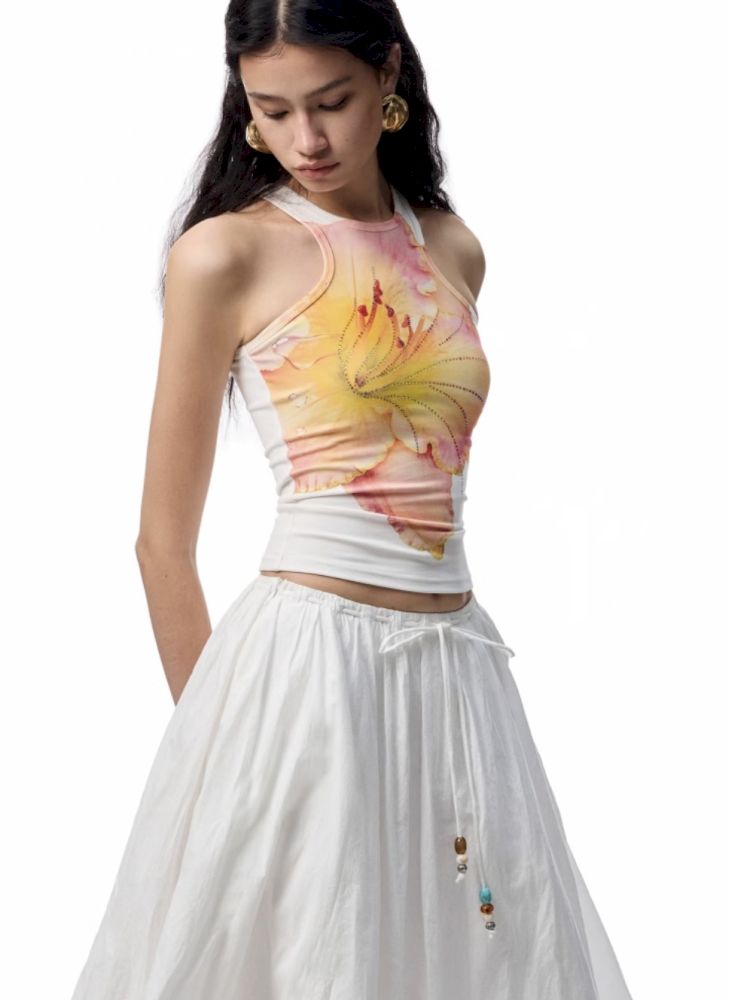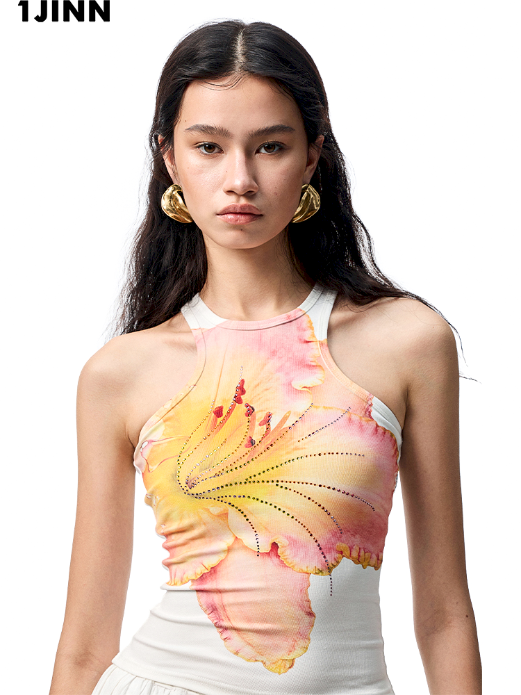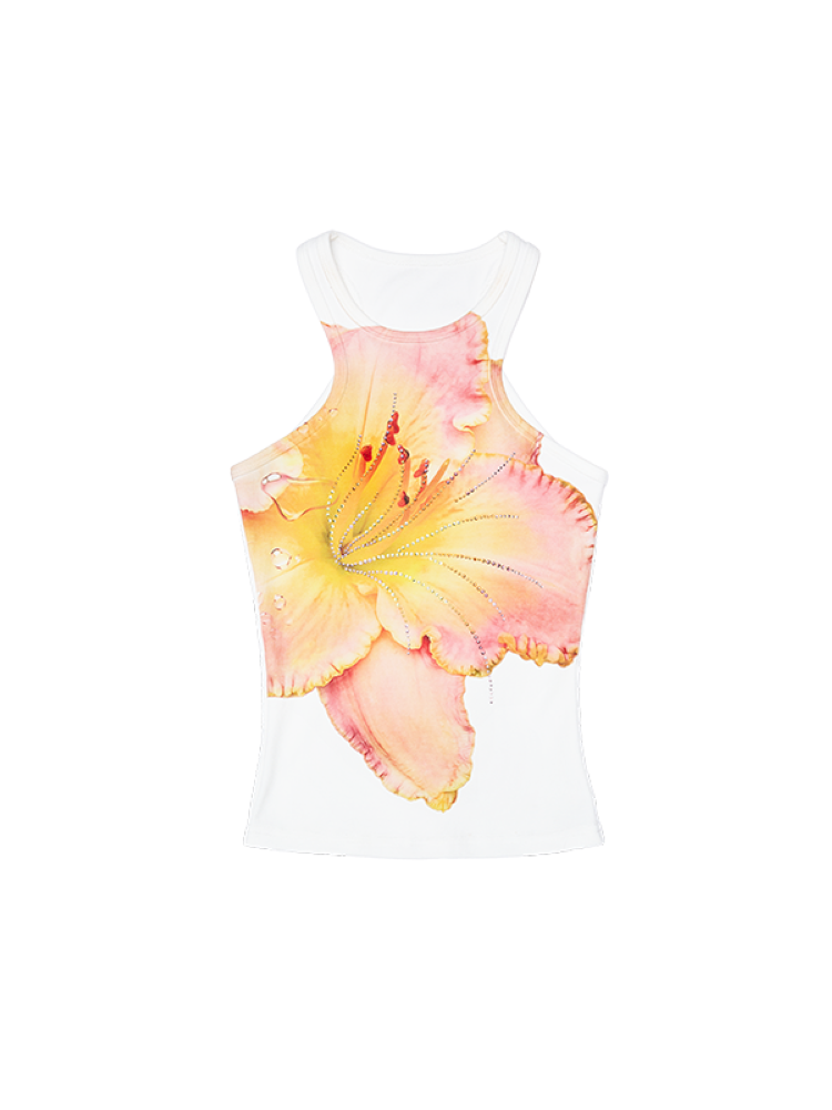 Floral Printing Hot Rhinestone Work Vest【s0000012406】
