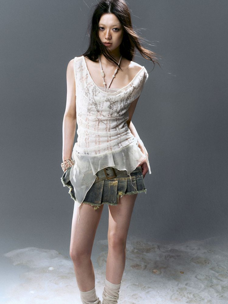 Hollow Swing Neck Sleeveless Blouse【s0000012644】