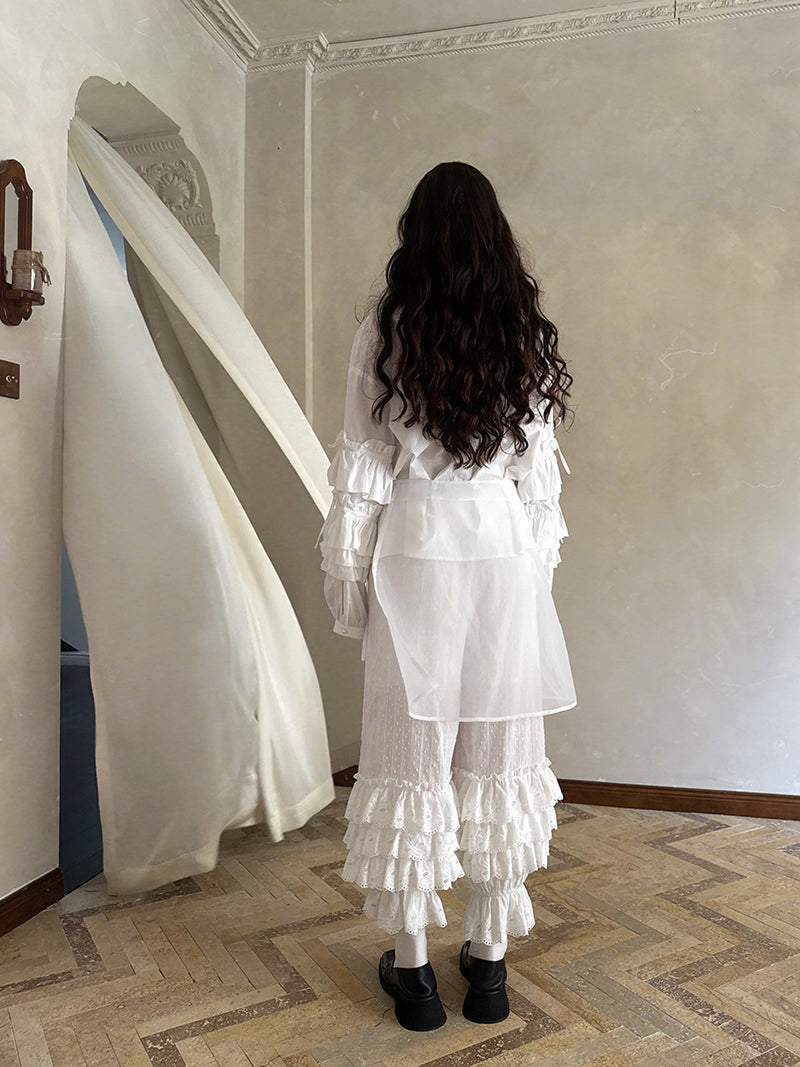 Pink checkered lace trim long-sleeved shirt【s0000012761】