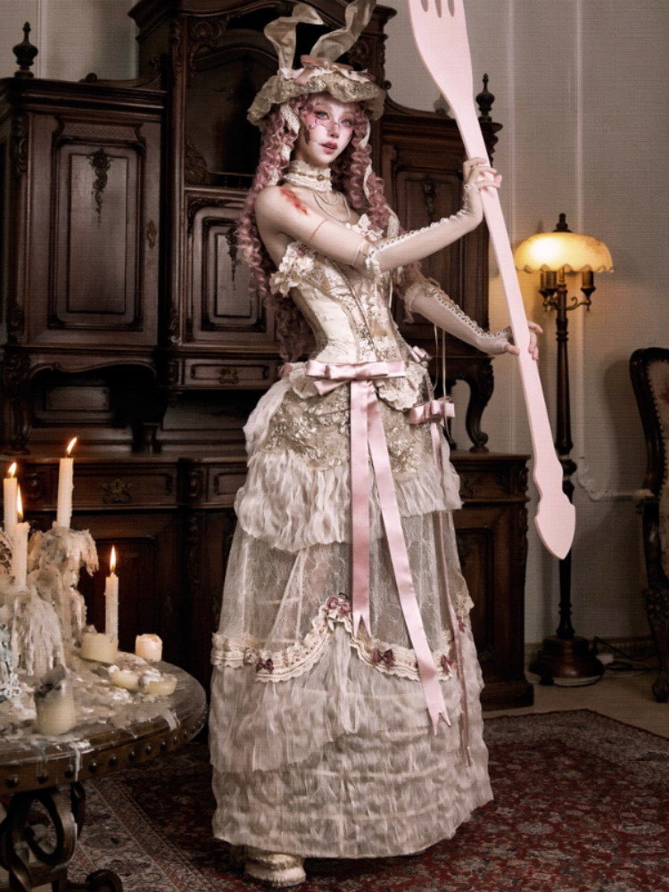 Basil French Elegant Vintage Ribbon Lace Long Trailing Skirt【s0000013577】