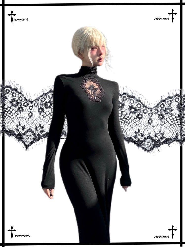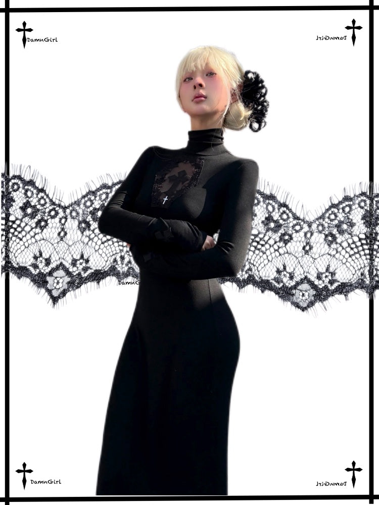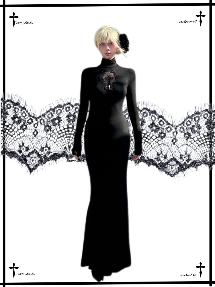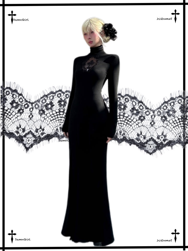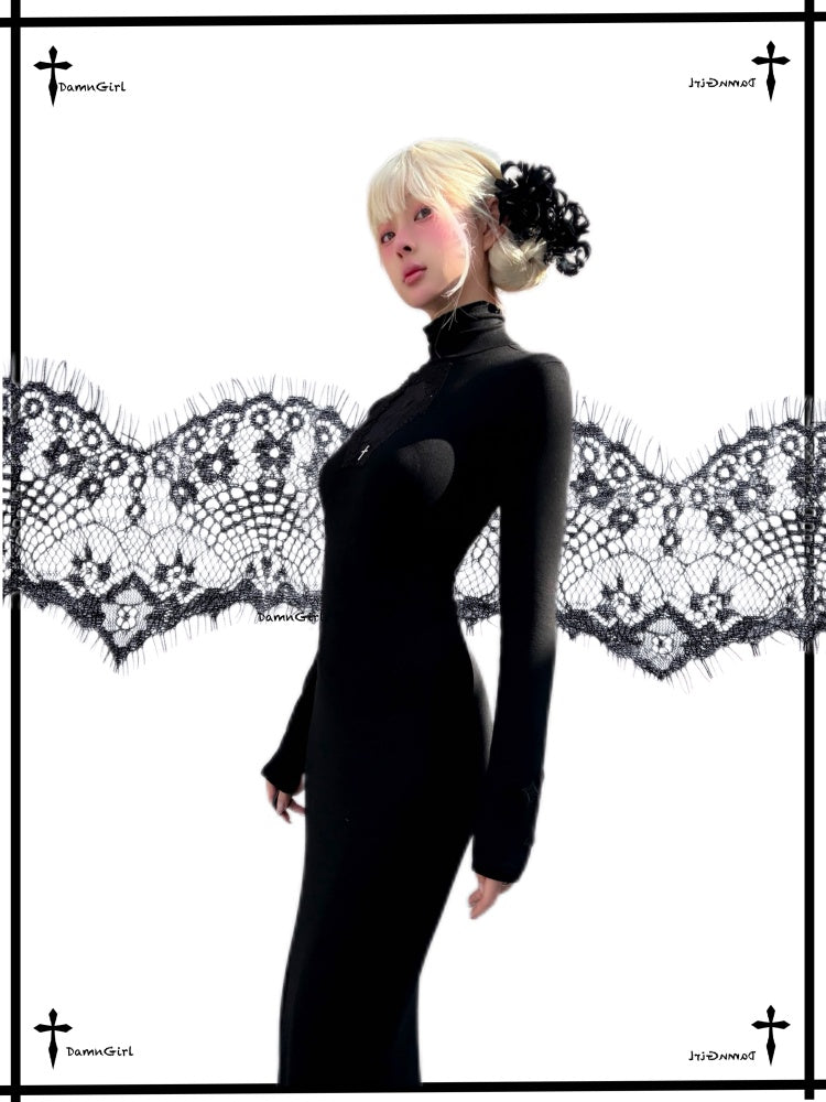 Cross Fishtail Wrap Hip Maxi Skirt Gothian Mesh Cut Out Slim Dress【s0000013581】