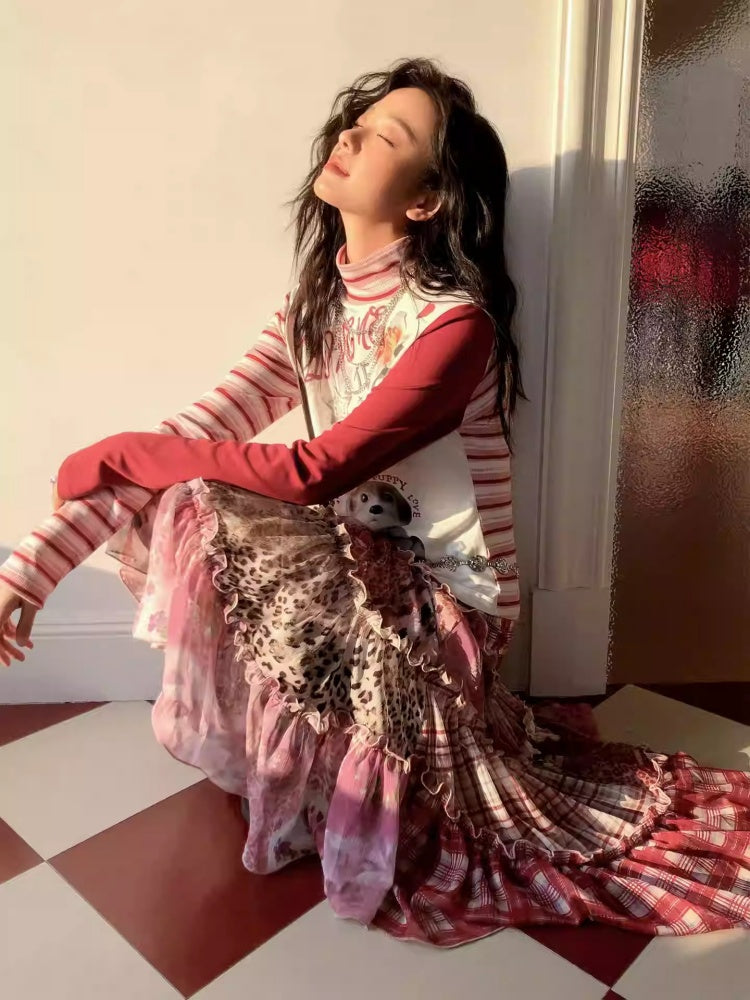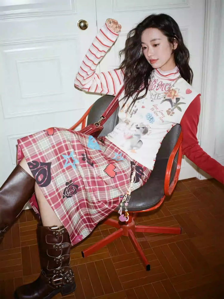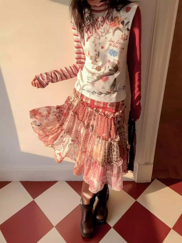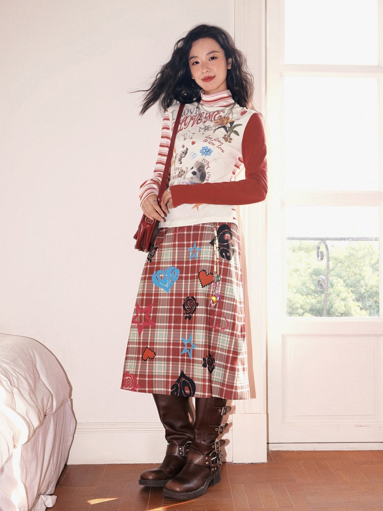 "Puppy Toy Shop" High-Neck Print Design Spliced Long Sleeved T-Shirt【s0000013842】