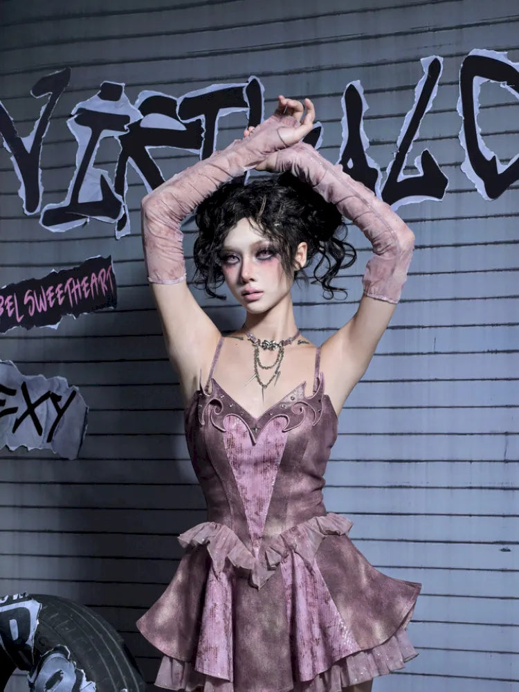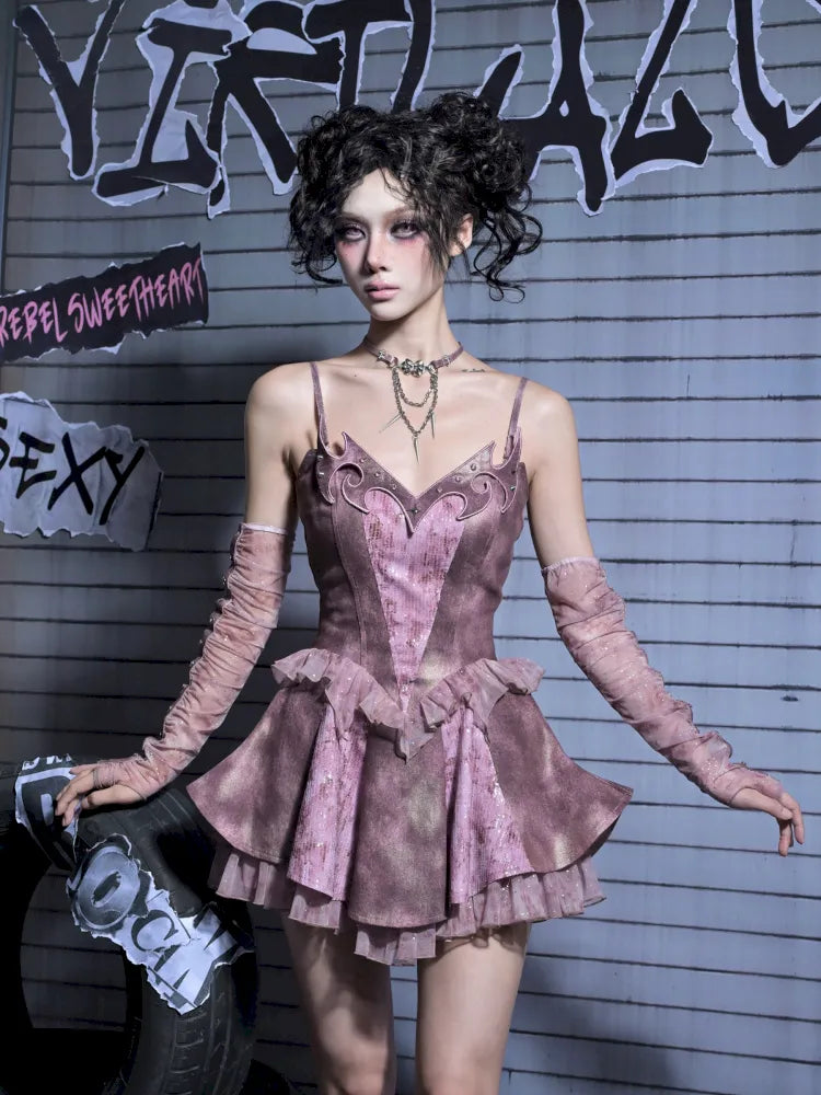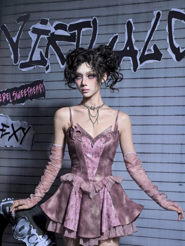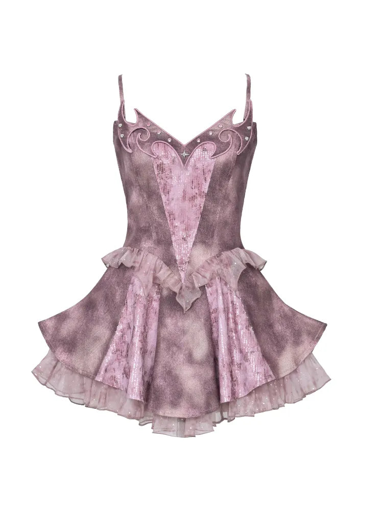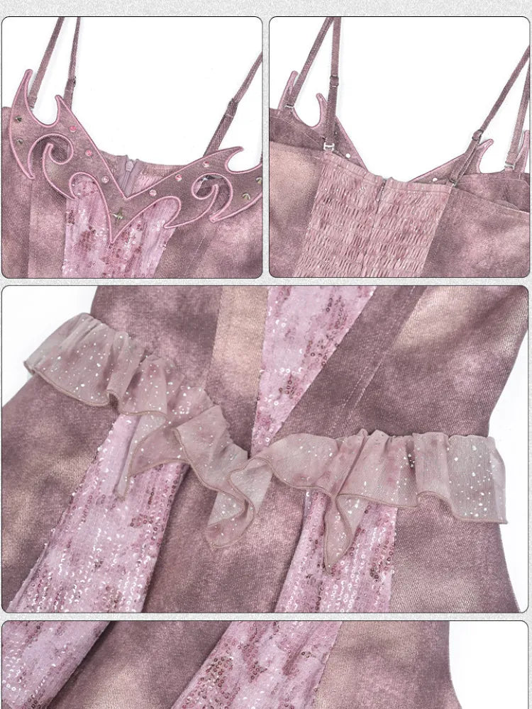 Embroidered Sequins Denim Girl Punk Style Slip Dress【s0000014023】