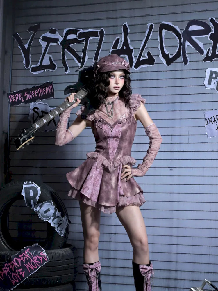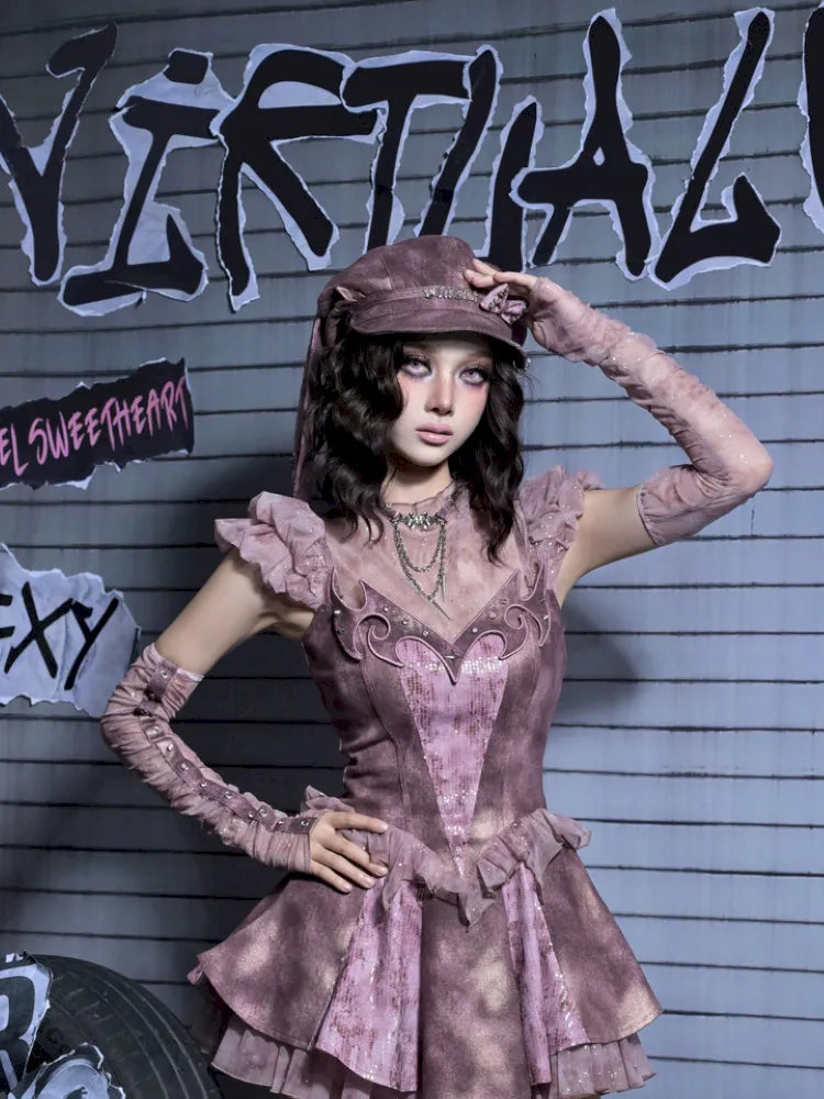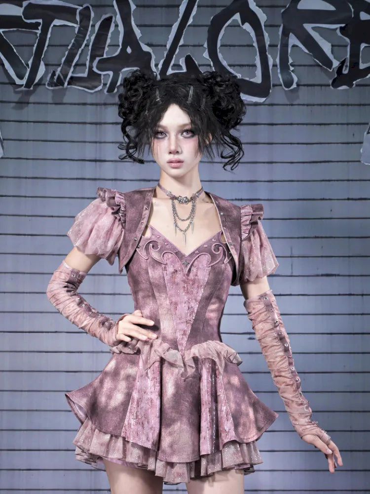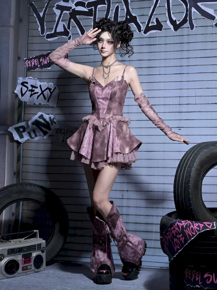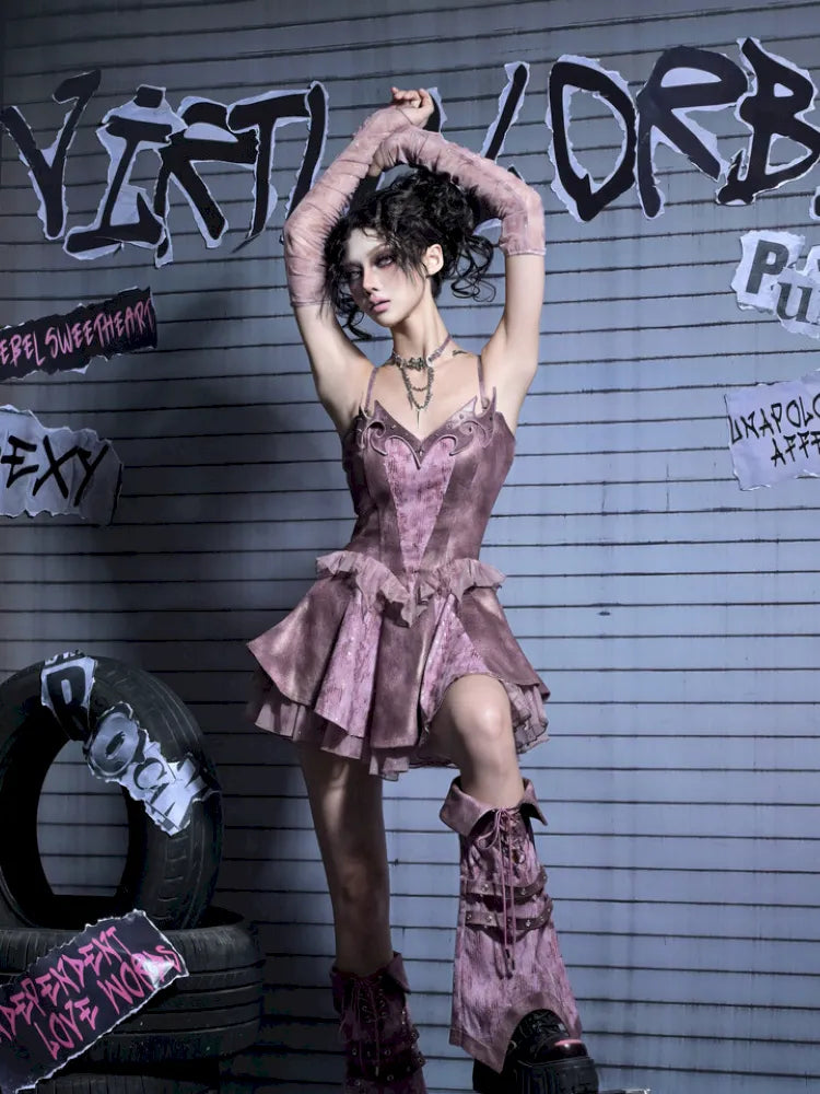 Embroidered Sequins Denim Girl Punk Style Slip Dress【s0000014023】