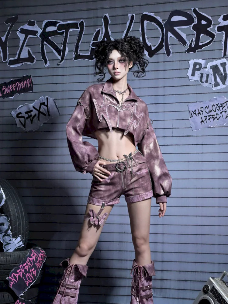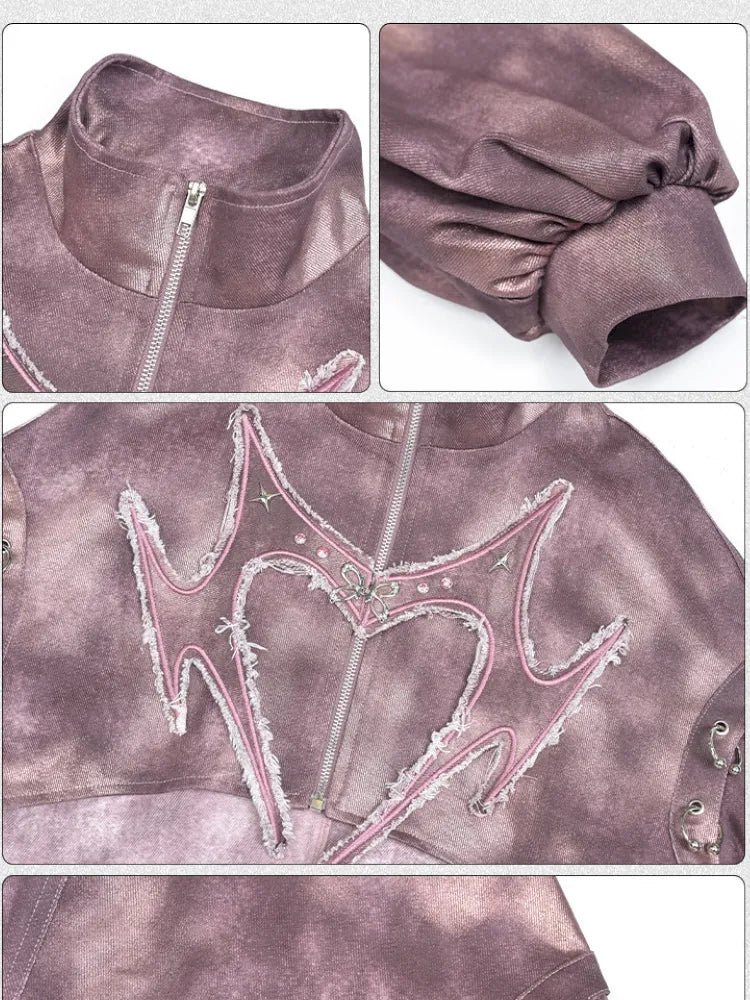 Embroidered Rivet Girl Punk Style Niche Short Denim Jacket【s0000014029】