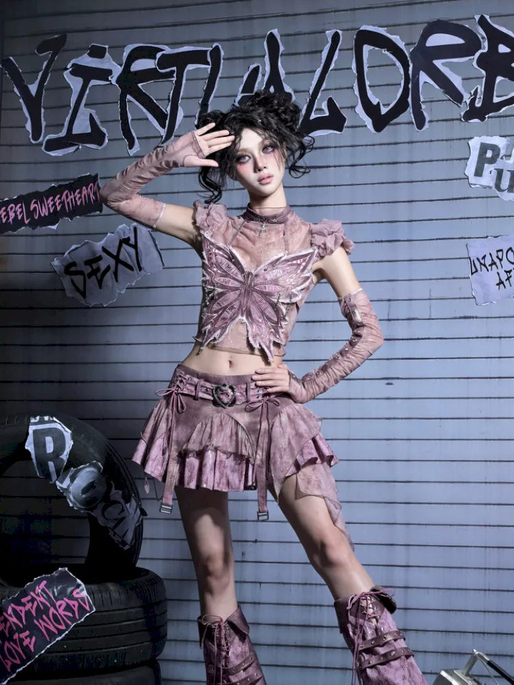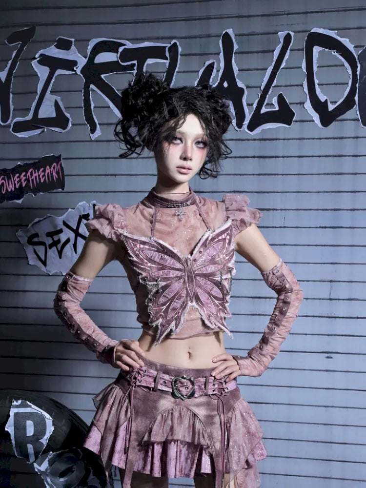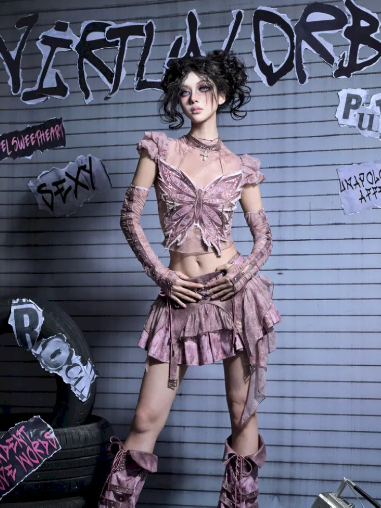 Butterfly Bandeau Mesh Base Jacket Two-Piece Set【s0000014030】